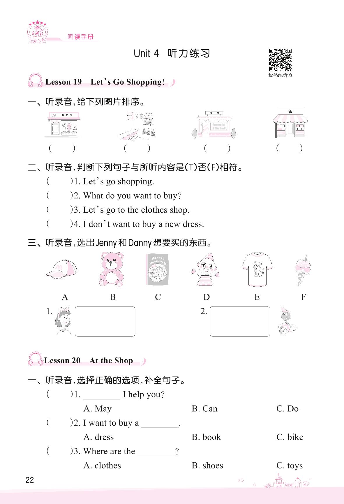 2022上册四年级英语冀教版 Unit 4 Shopping in the City—Lesson 19-23听力练习