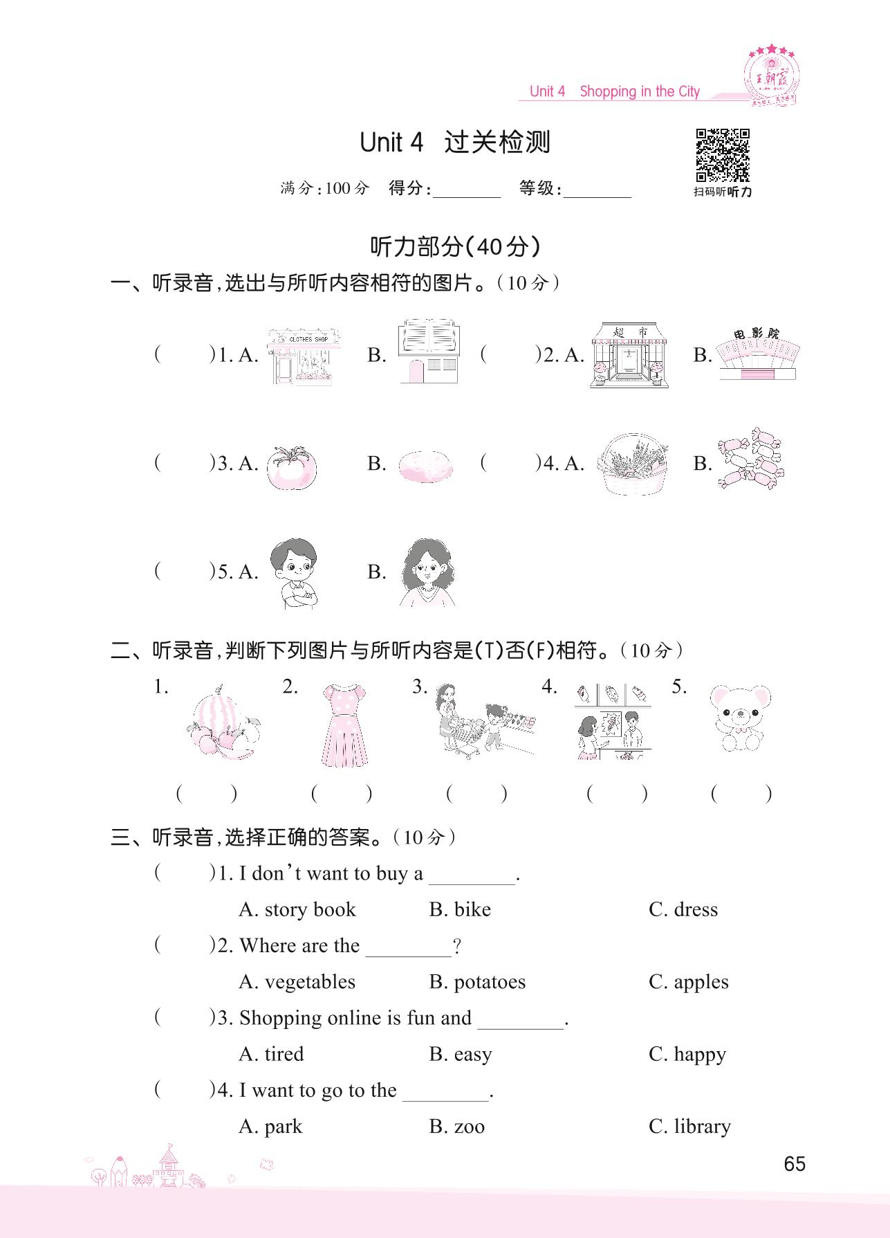 2022上册四年级英语冀教版 Unit 4 过关检测