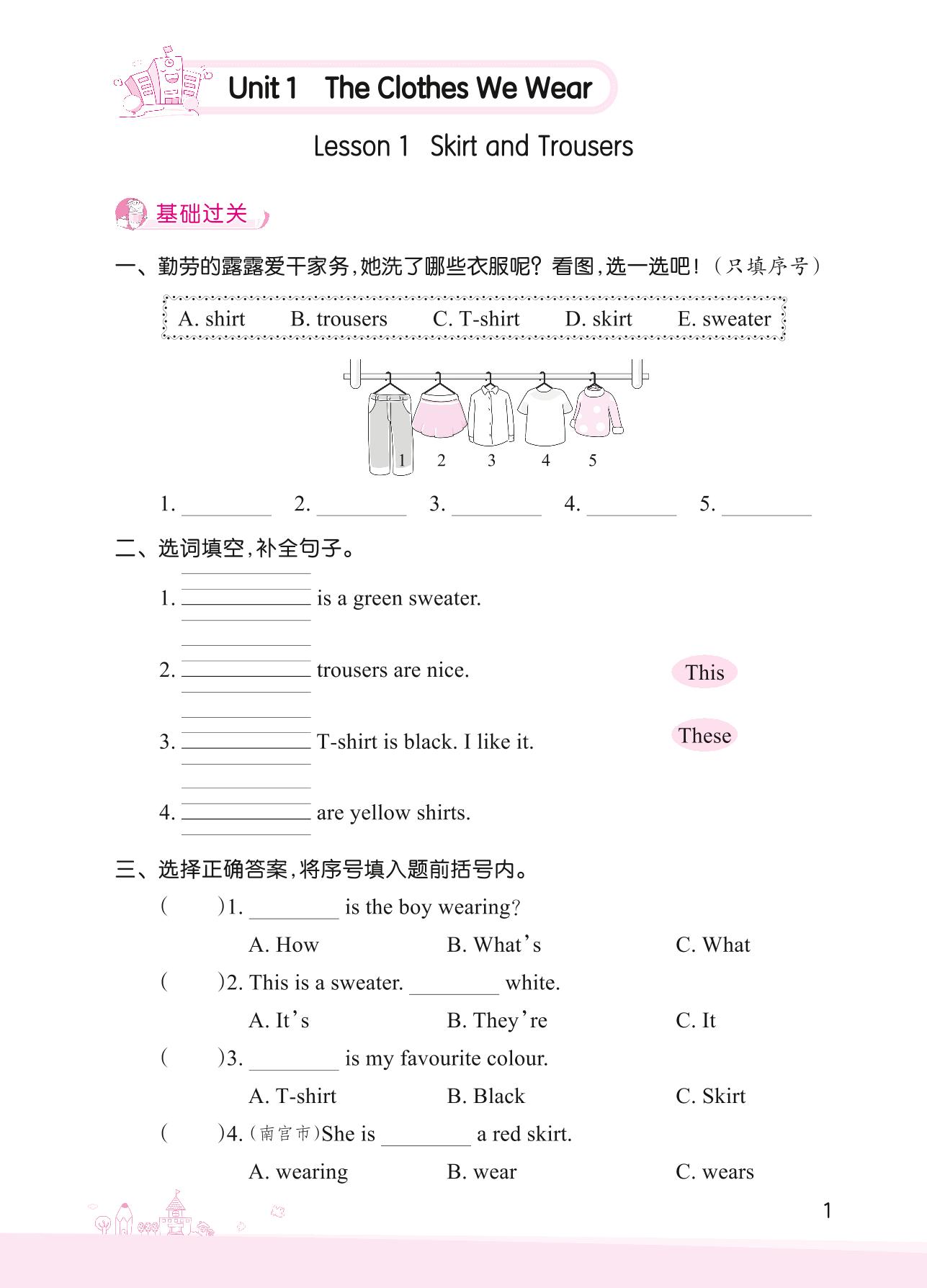 2022上册四年级英语冀教版 Unit 1—Lesson 1 Skirt and Trousers