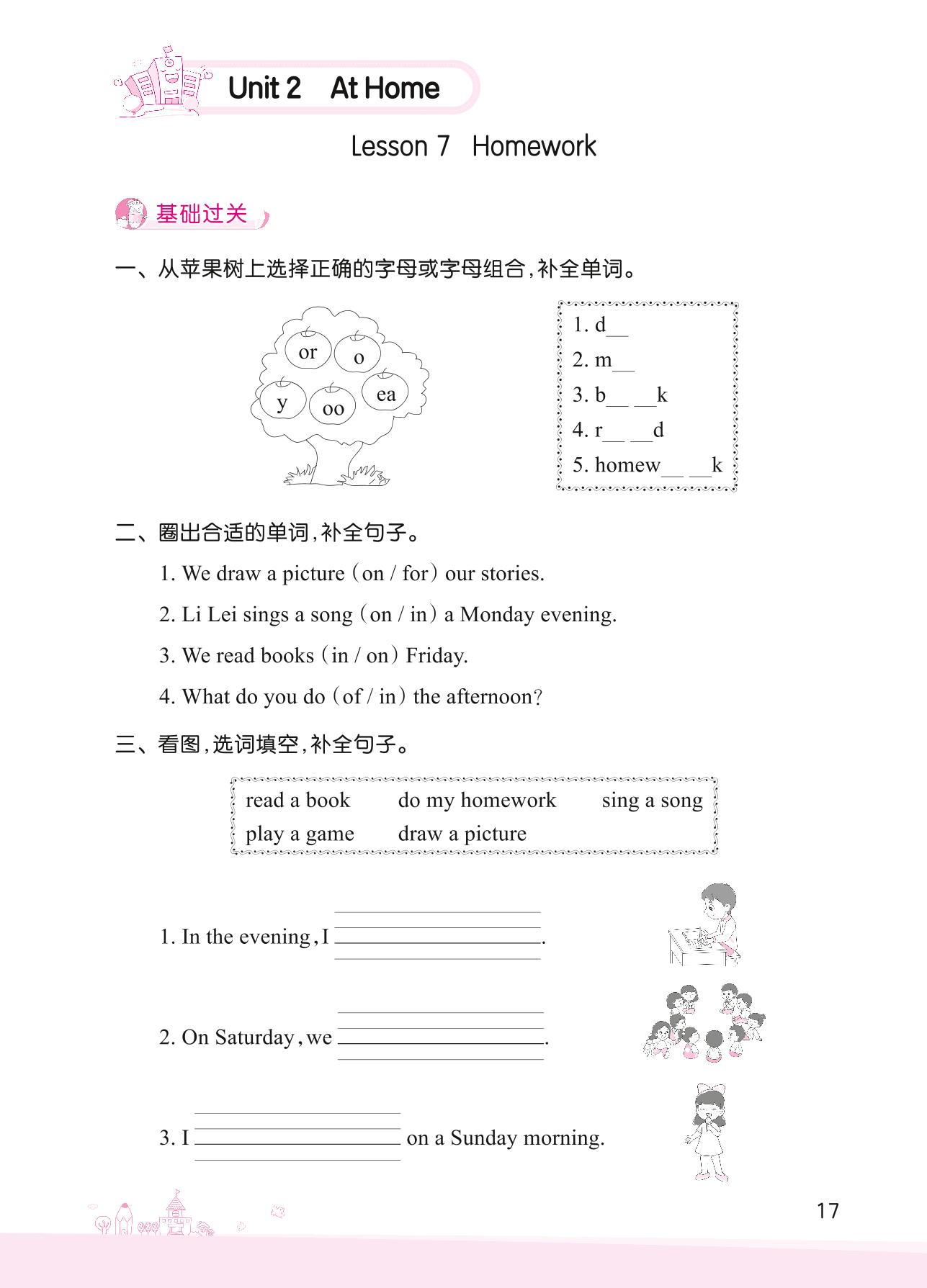 2022上册四年级英语冀教版 Unit 2—Lesson 7 Homework