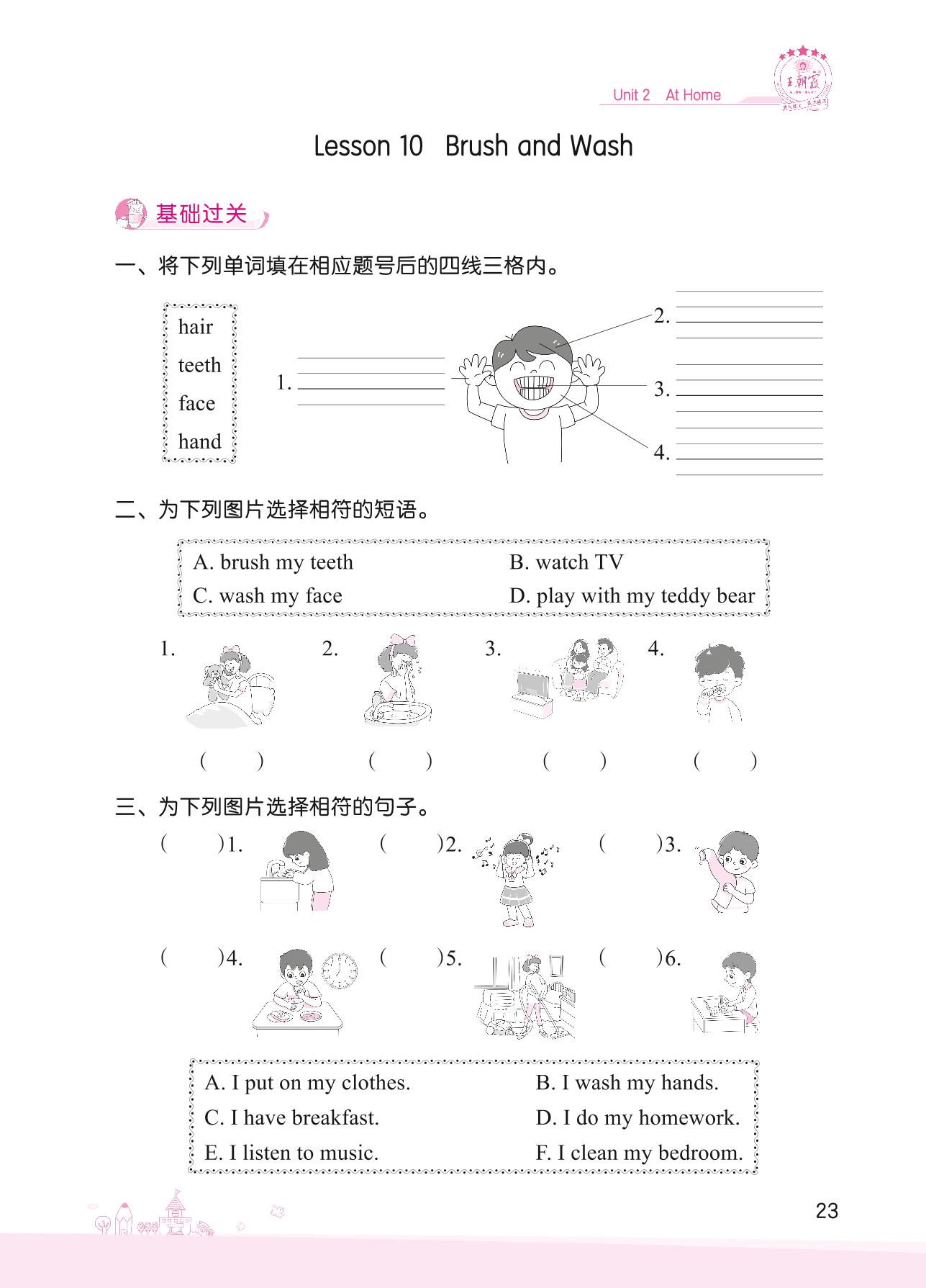 2022上册四年级英语冀教版 Unit 2—Lesson 10 Brush and Wash