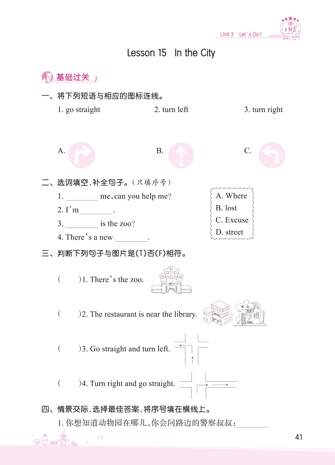 2022上册四年级英语冀教版 Unit 3—Lesson 15 In the City