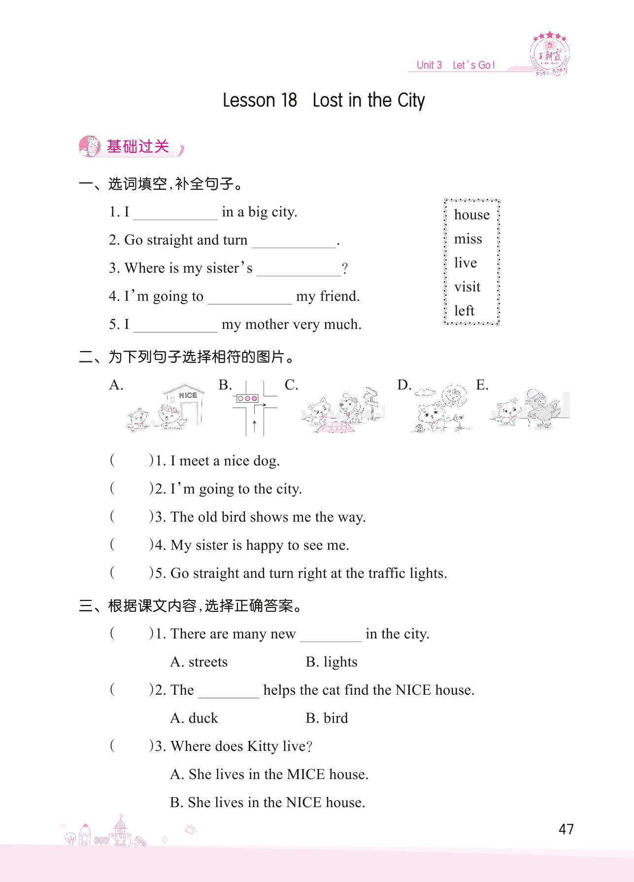 2022上册四年级英语冀教版 Unit 3—Lesson 18 Lost in the City