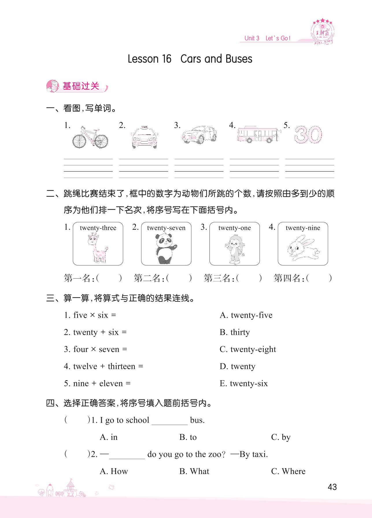 2022上册四年级英语冀教版 Unit 3—Lesson 16 Cars and Buses