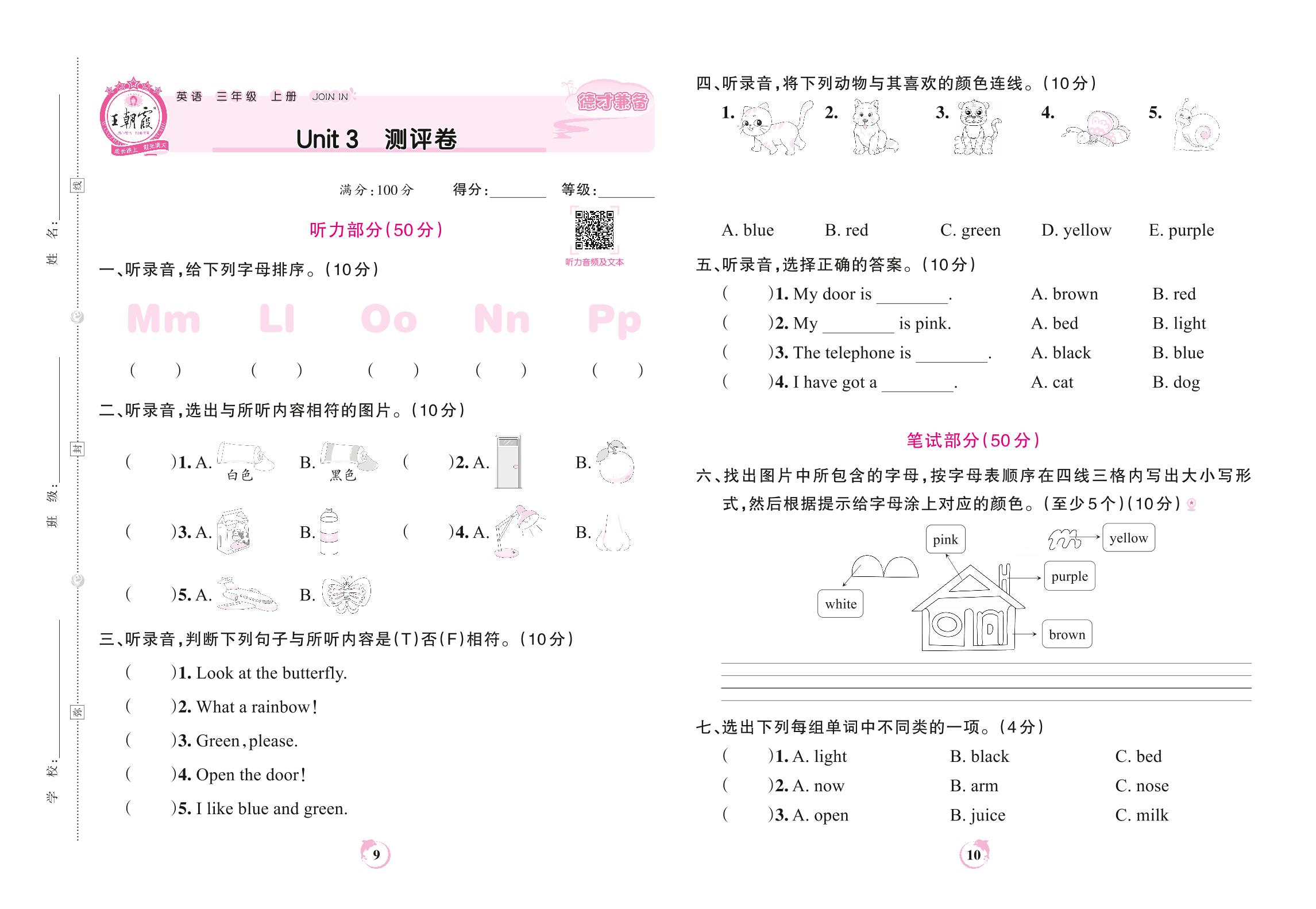 三年级英语剑桥版上册单元卷