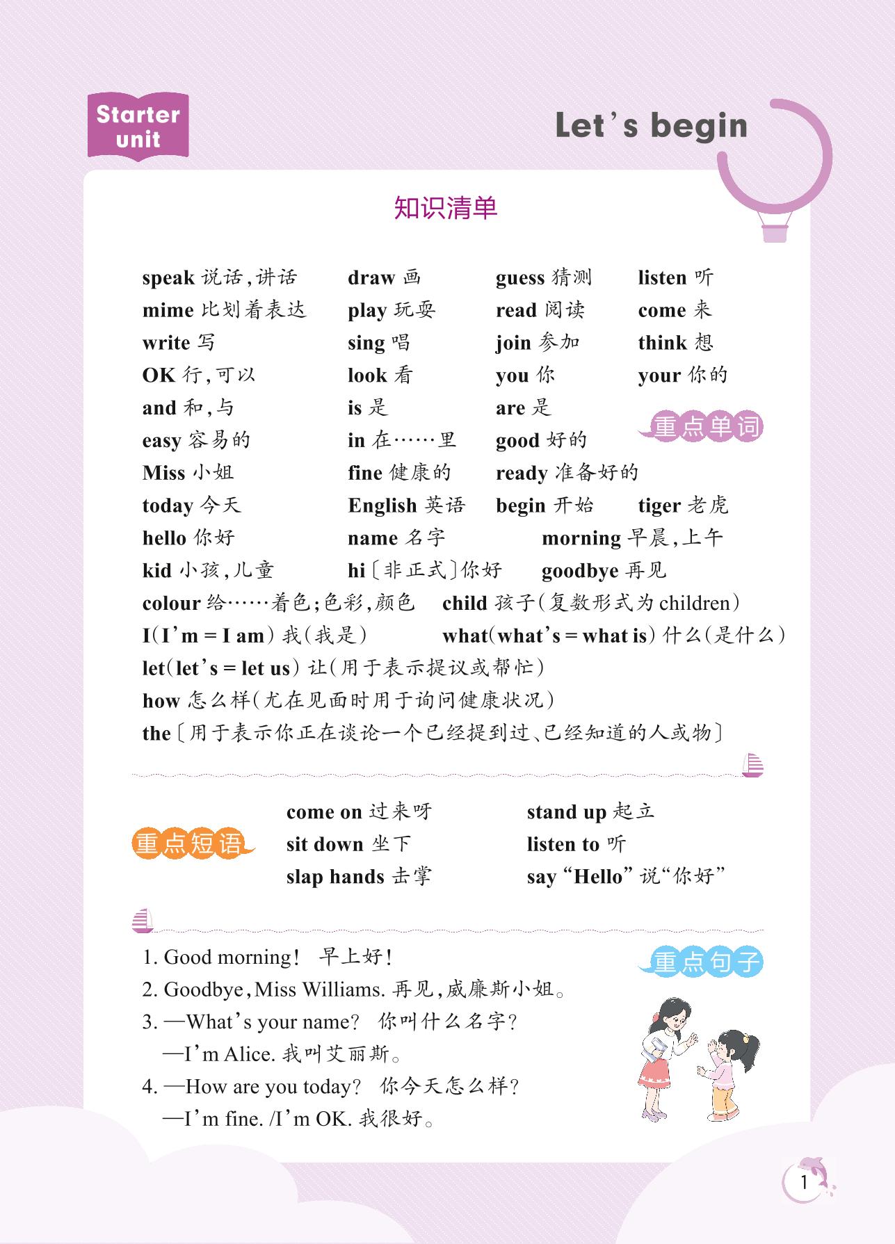 2022上册三年级英语剑桥版 Starter unit 知识清单