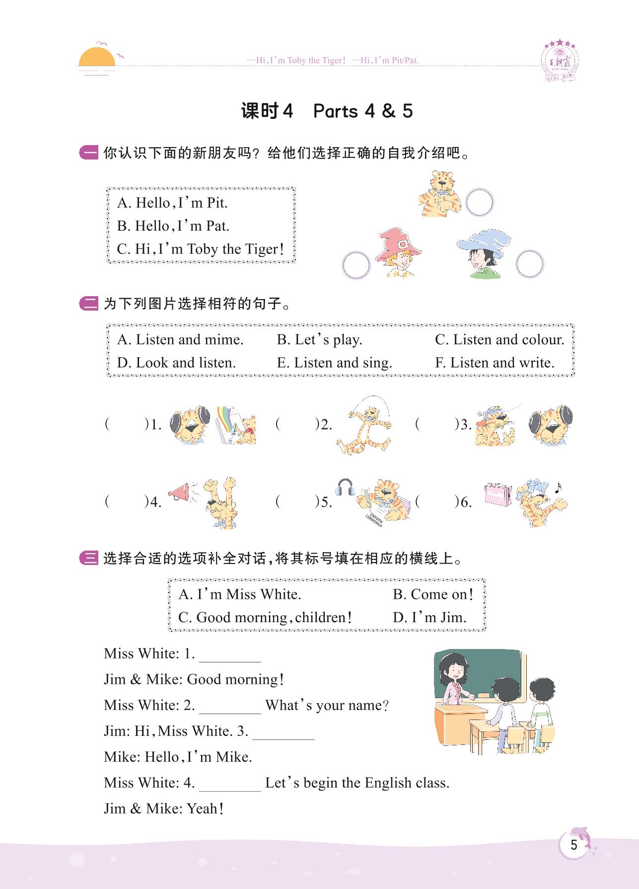 2022上册三年级英语剑桥版 Starter unit—课时 4 Parts 4 & 5