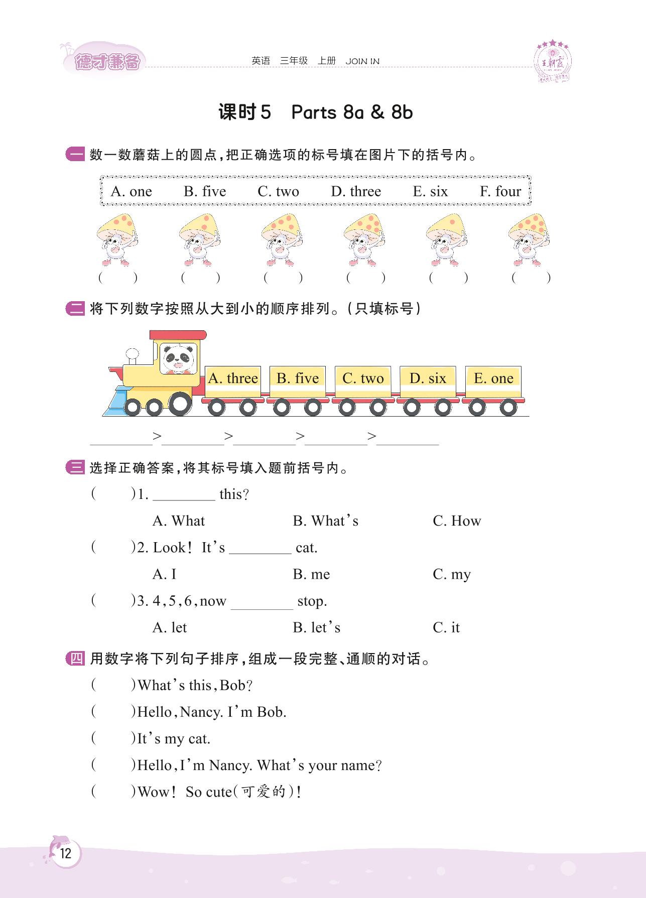2022上册三年级英语剑桥版 Unit 1—课时 5 Parts 8a & 8b