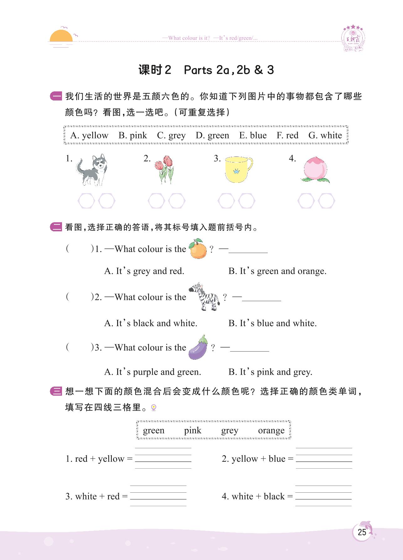 2022上册三年级英语剑桥版 Unit 3—课时 2 Parts 2a,2b & 3