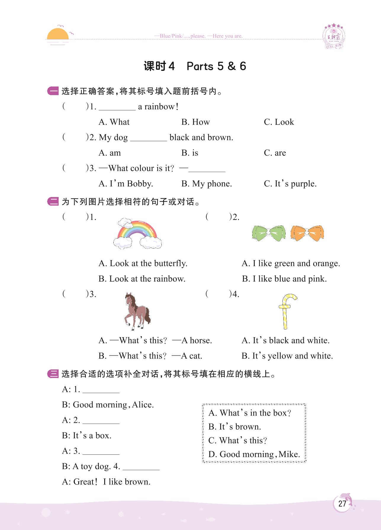 2022上册三年级英语剑桥版 Unit 3—课时 4 Parts 5 & 6