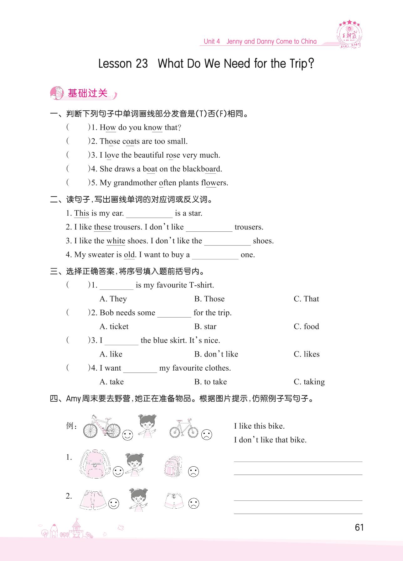 2022上册五年级英语冀教版 Unit 4—Lesson 23 What Do We Need for the Trip?