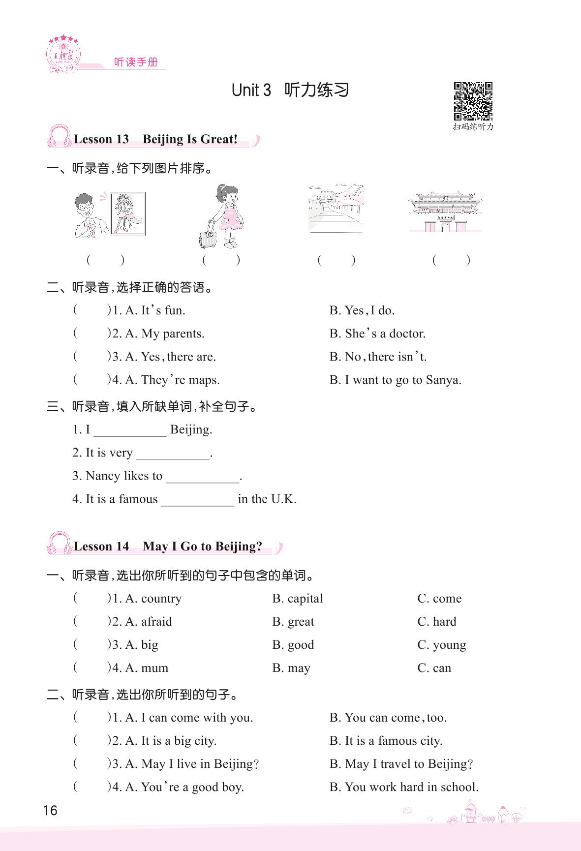 2022上册五年级英语冀教版 Unit 3 A Travel Plan—Lesson 13-17听力练习