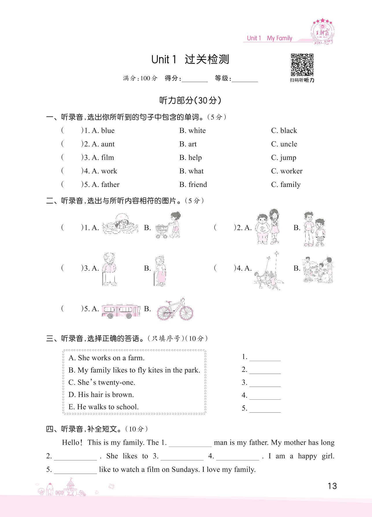 五年级英语冀教版上册单元卷