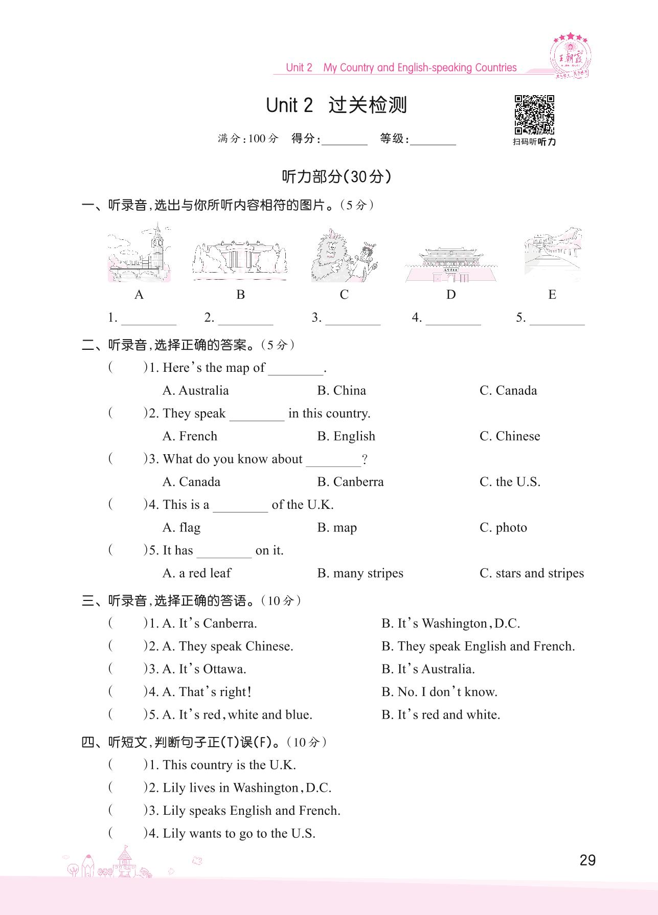2022上册五年级英语冀教版 Unit 2 过关检测