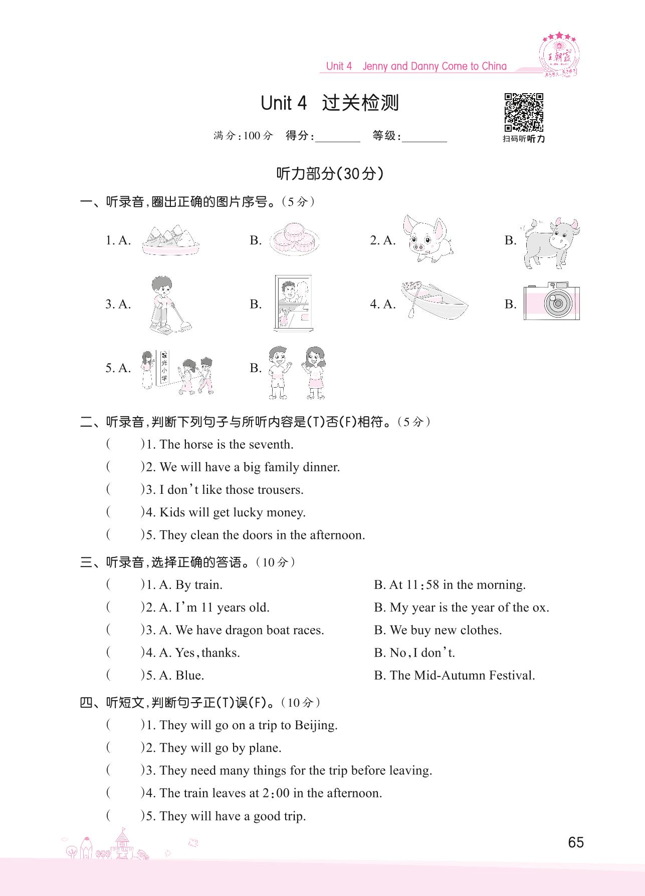 2022上册五年级英语冀教版 Unit 4 过关检测