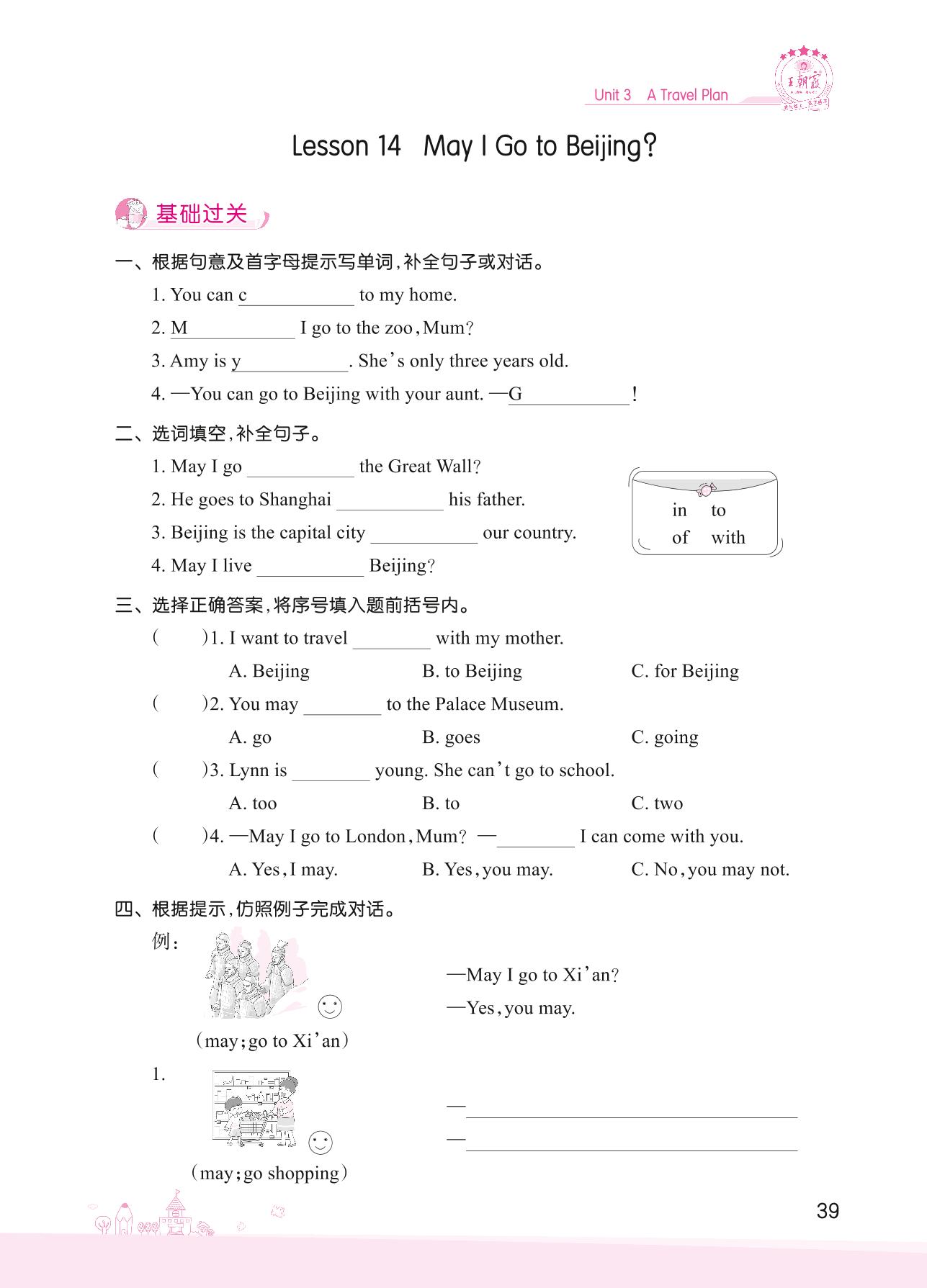 2022上册五年级英语冀教版 Unit 3—Lesson 14 May I Go to Beijing?