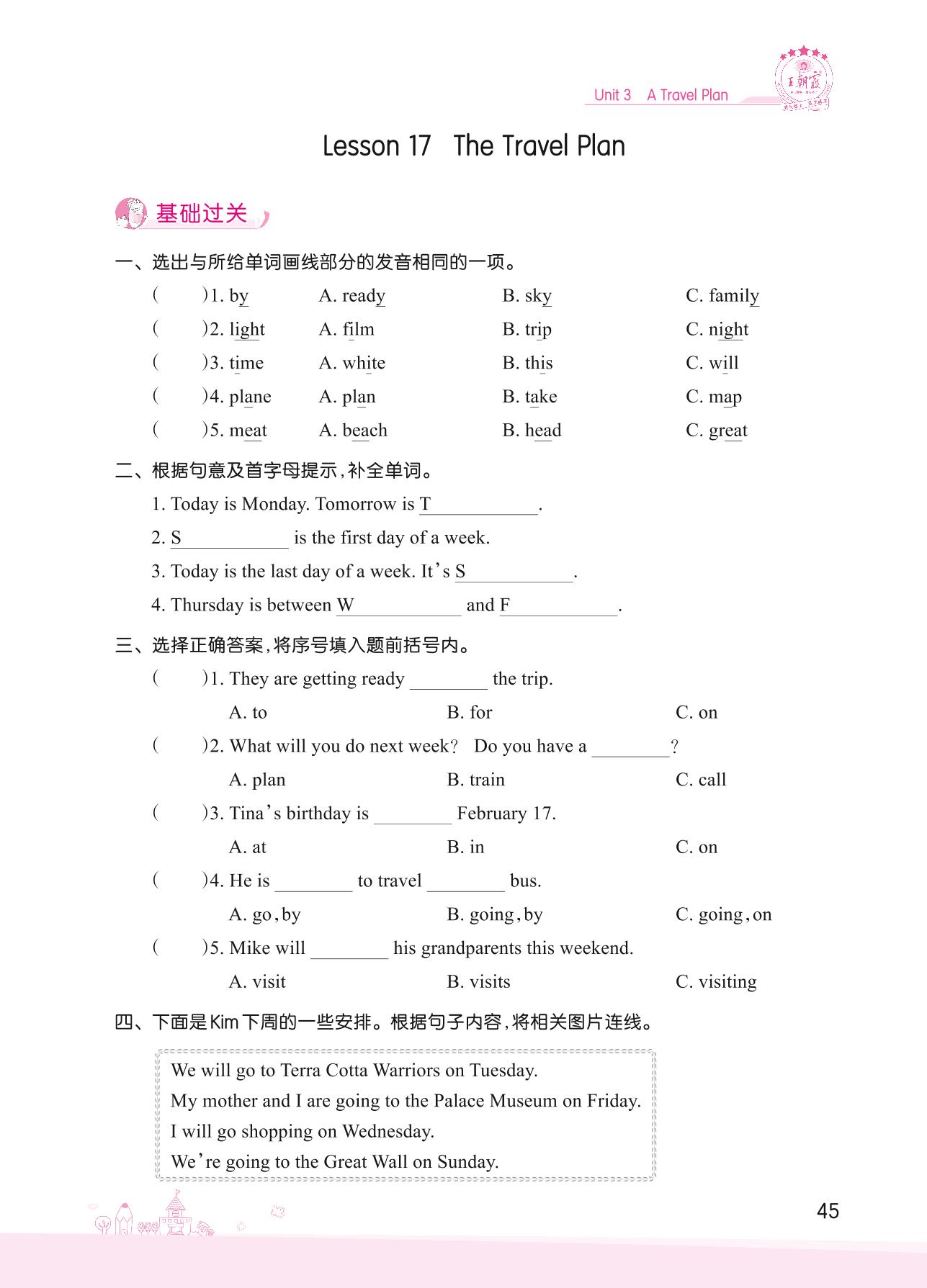 2022上册五年级英语冀教版 Unit 3—Lesson 17 The Travel Plan