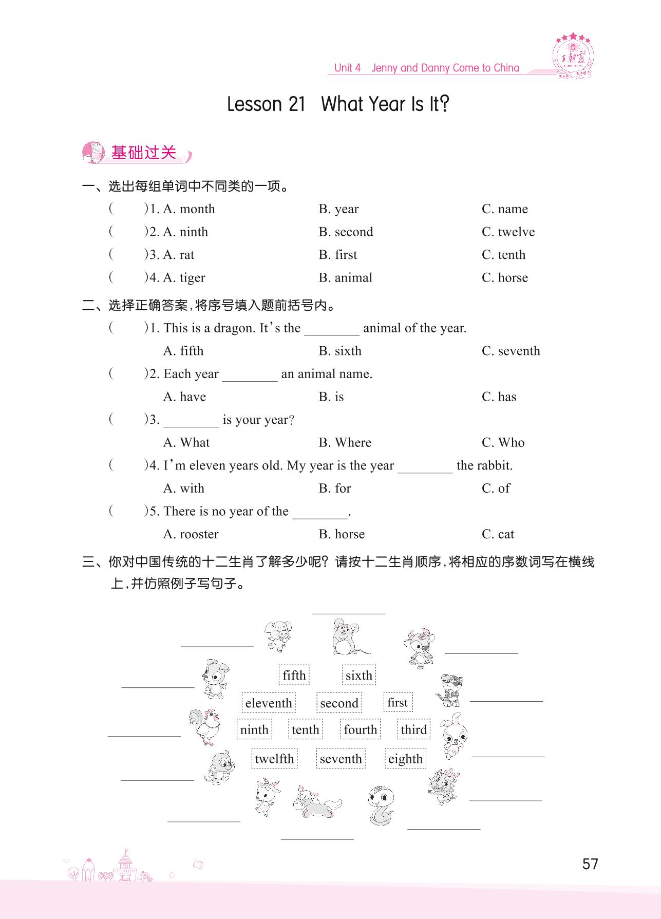 2022上册五年级英语冀教版 Unit 4—Lesson 21 What Year Is It?