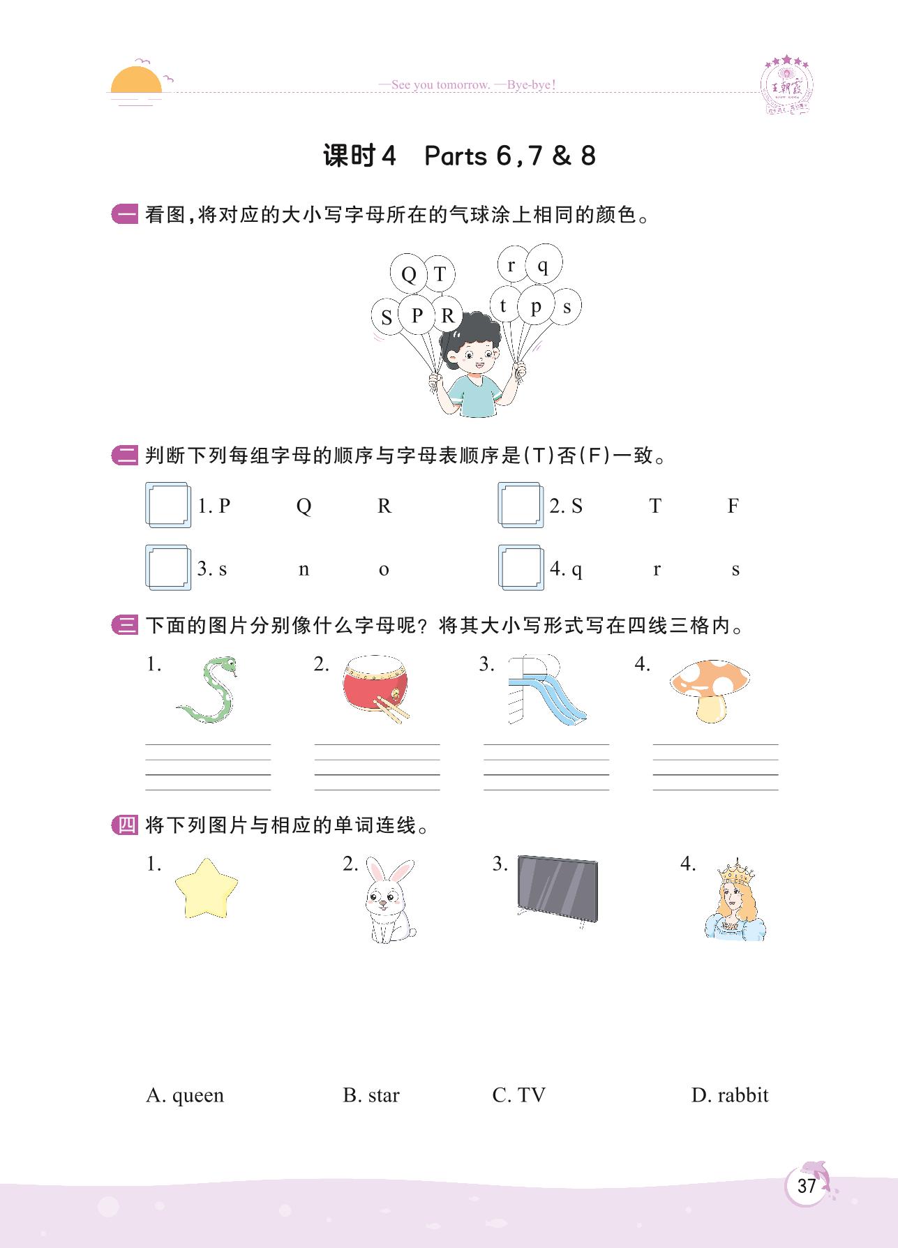 2022上册三年级英语剑桥版 Unit 4—课时 4 Parts 6,7 & 8