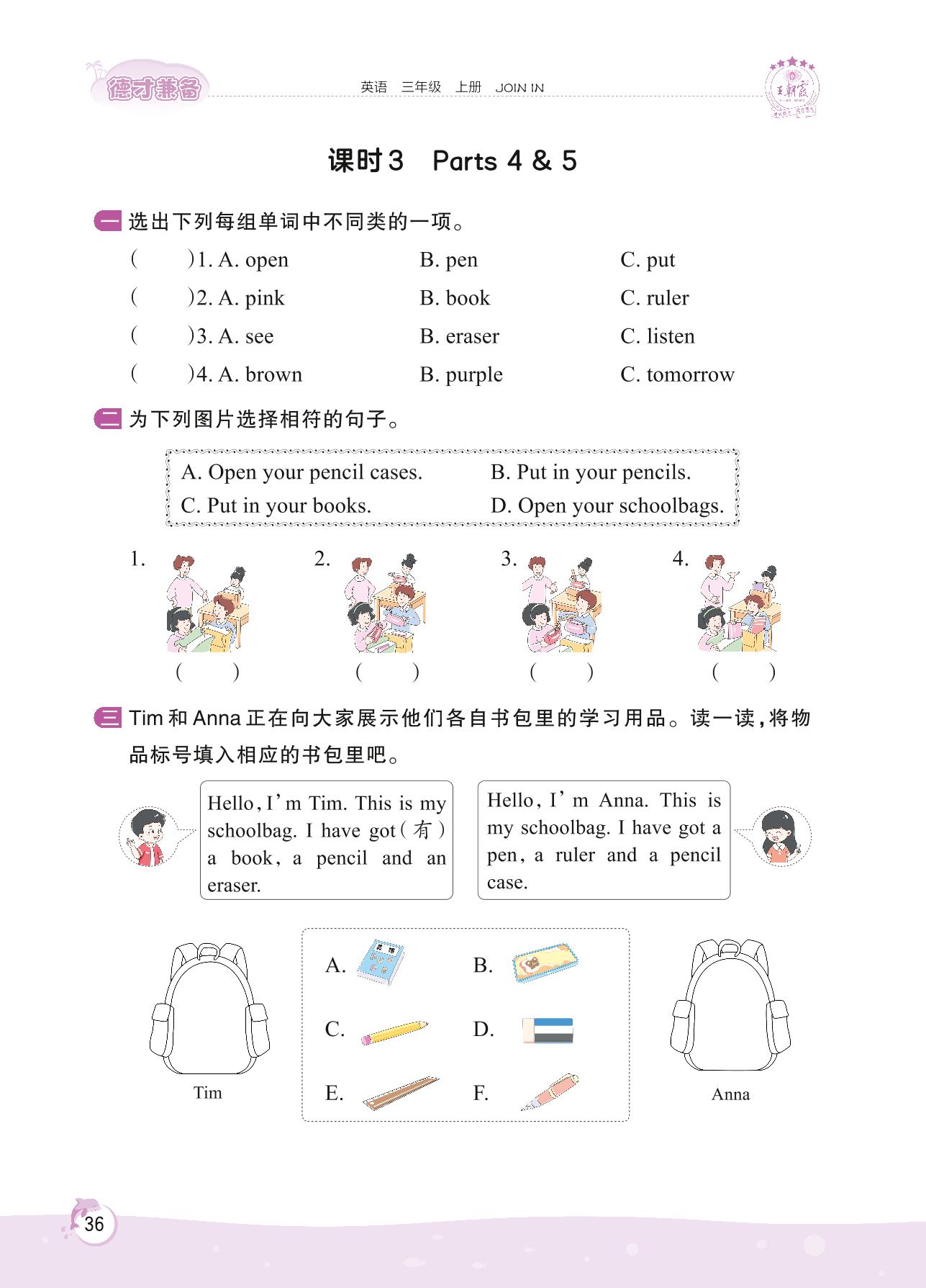 2022上册三年级英语剑桥版 Unit 4—课时 3 Parts 4 & 5