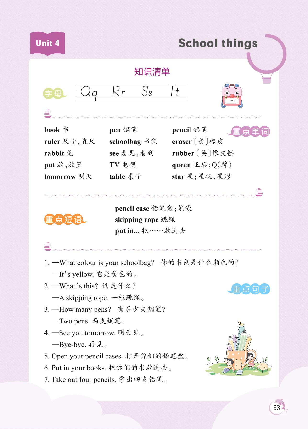 2022上册三年级英语剑桥版 Unit 4 知识清单