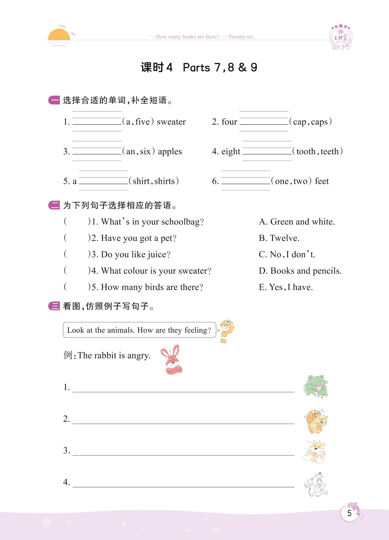 2022上册四年级英语剑桥版 Starter unit—课时 4 Parts 7,8 & 9