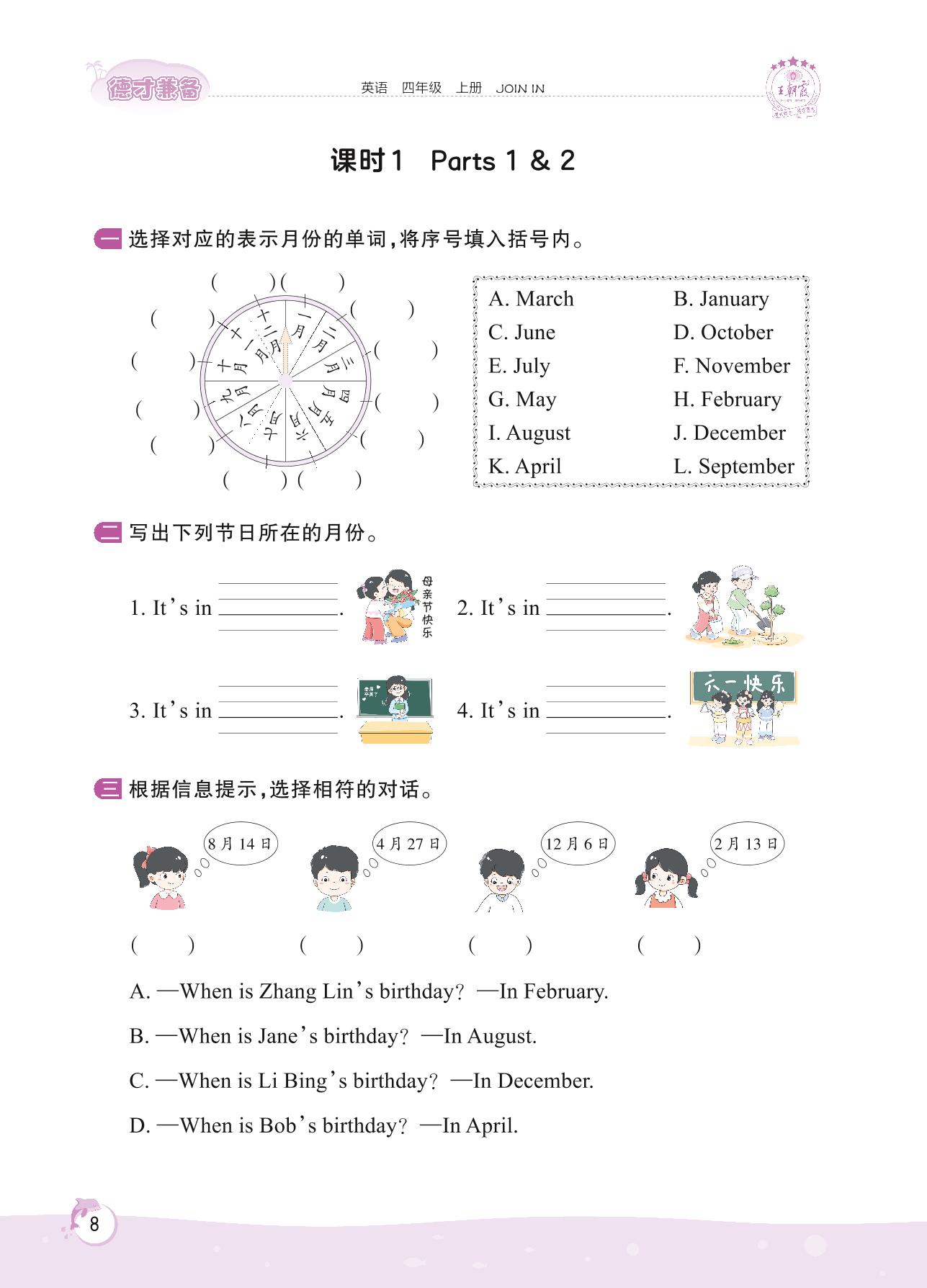 2022上册四年级英语剑桥版 Unit 1—课时 1 Parts 1 & 2
