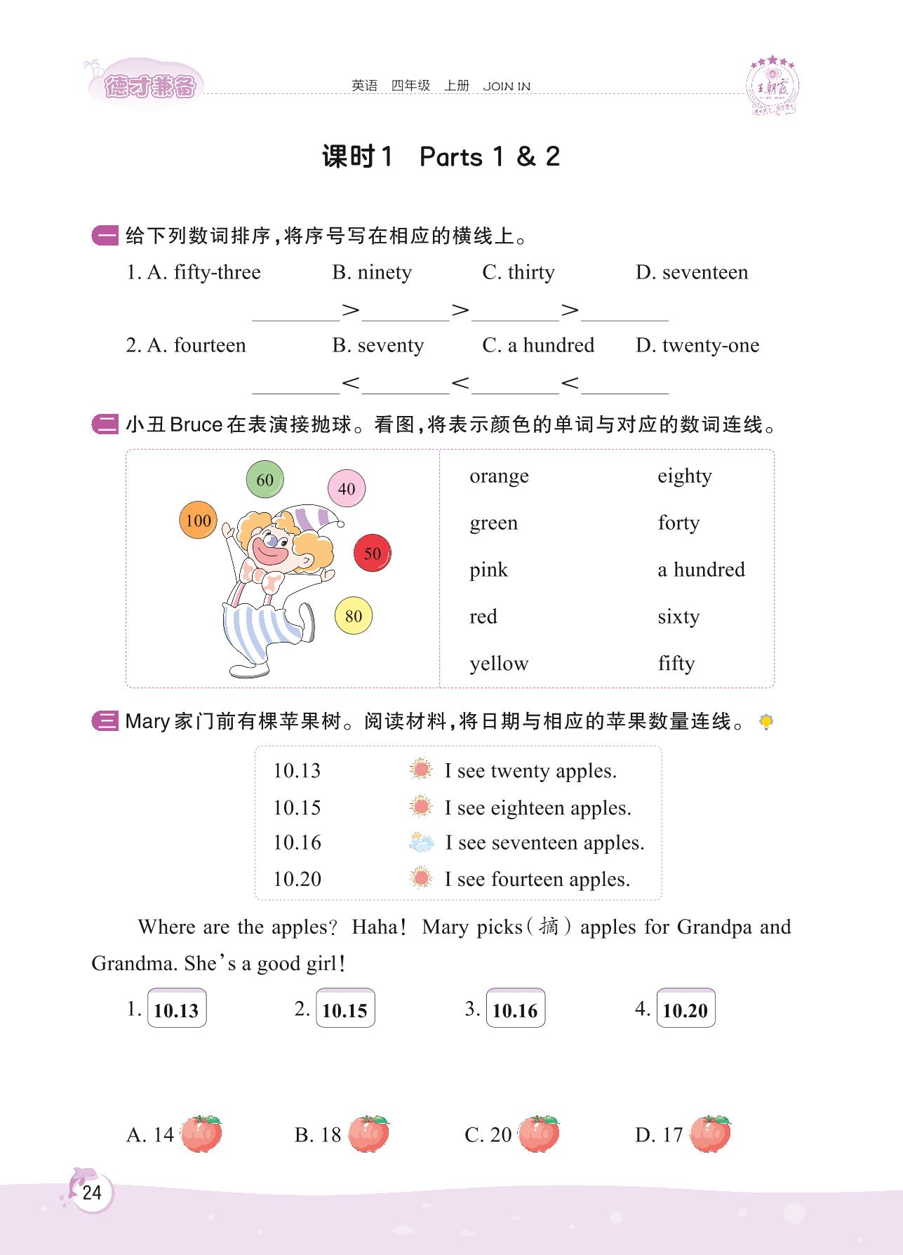 2022上册四年级英语剑桥版 Unit 3—课时 1 Parts 1 & 2