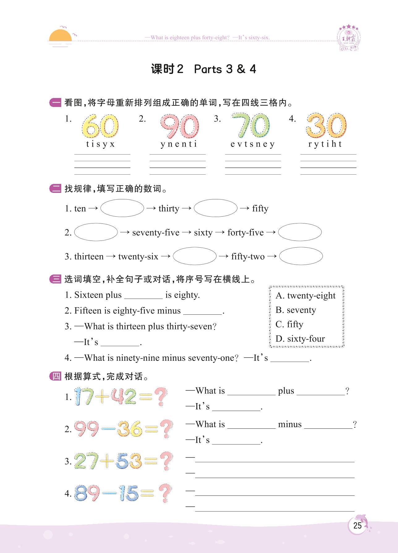 2022上册四年级英语剑桥版 Unit 3—课时 2 Parts 3 & 4