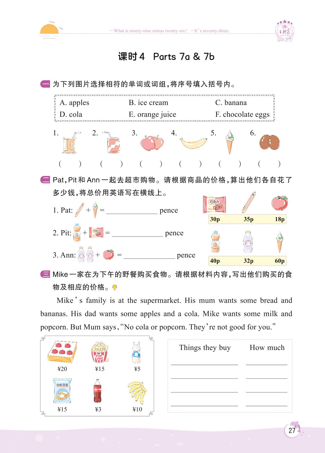 2022上册四年级英语剑桥版 Unit 3—课时 4 Parts 7a & 7b