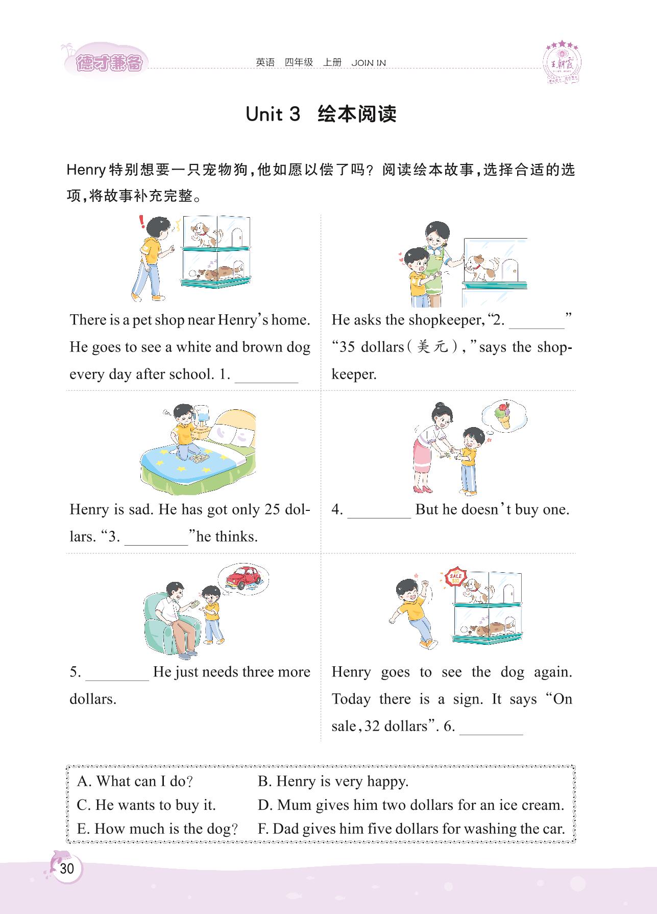 2022上册四年级英语剑桥版 Unit 3 绘本阅读