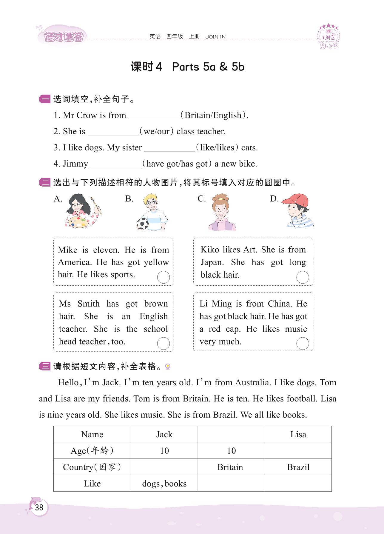 2022上册四年级英语剑桥版 Unit 4—课时 4 Parts 5a & 5b