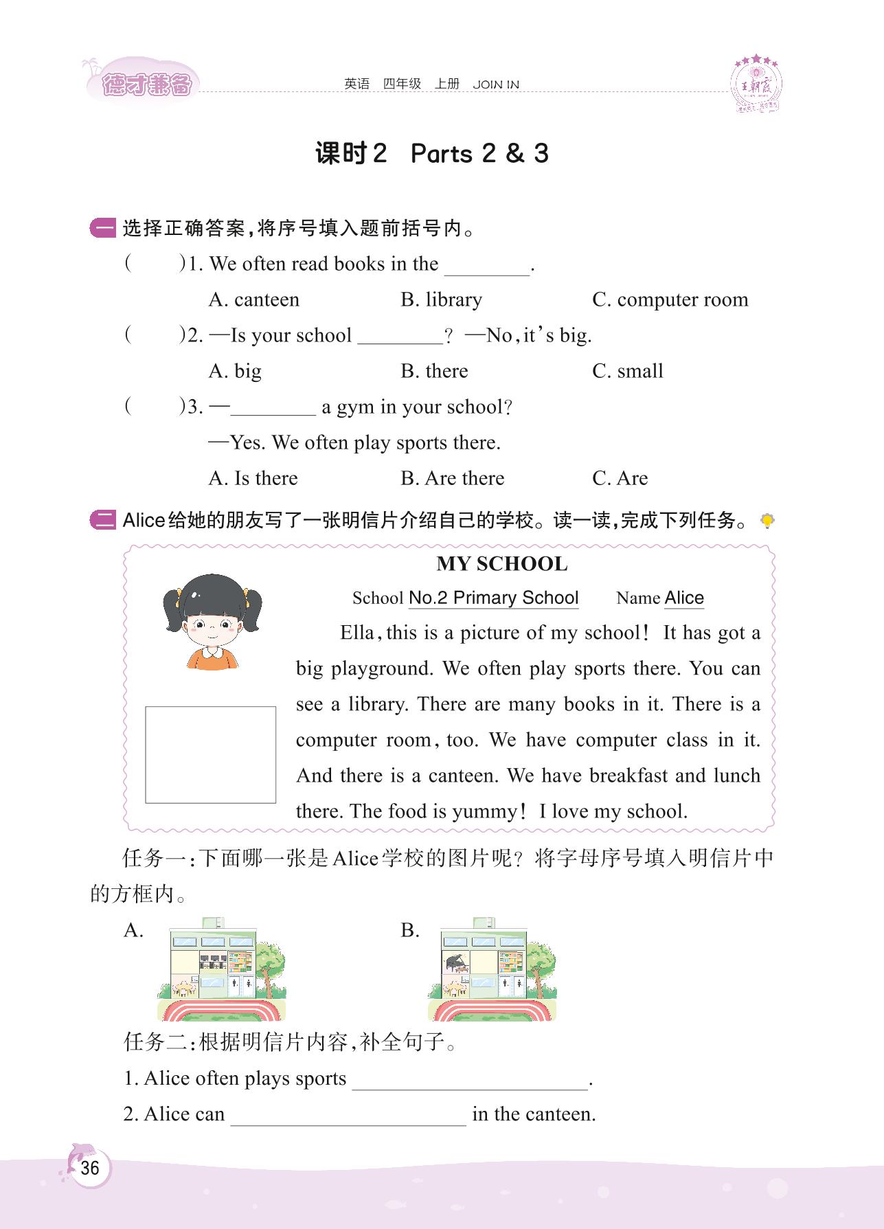 2022上册四年级英语剑桥版 Unit 4—课时 2 Parts 2 & 3