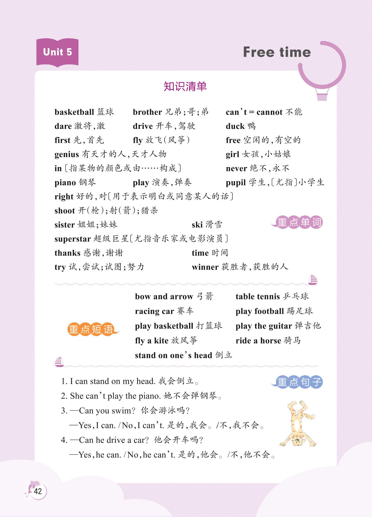 2022上册四年级英语剑桥版 Unit 5 知识清单