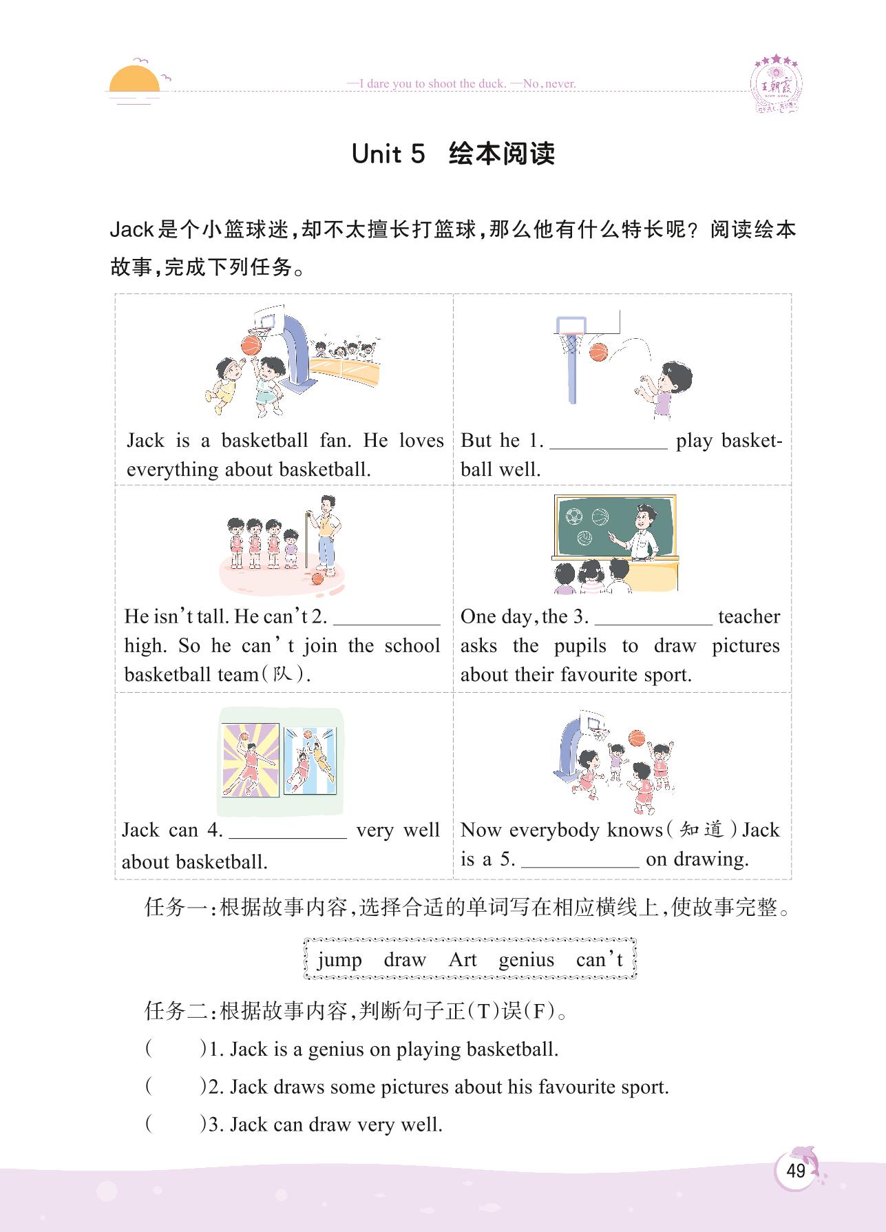 2022上册四年级英语剑桥版 Unit 5 绘本阅读