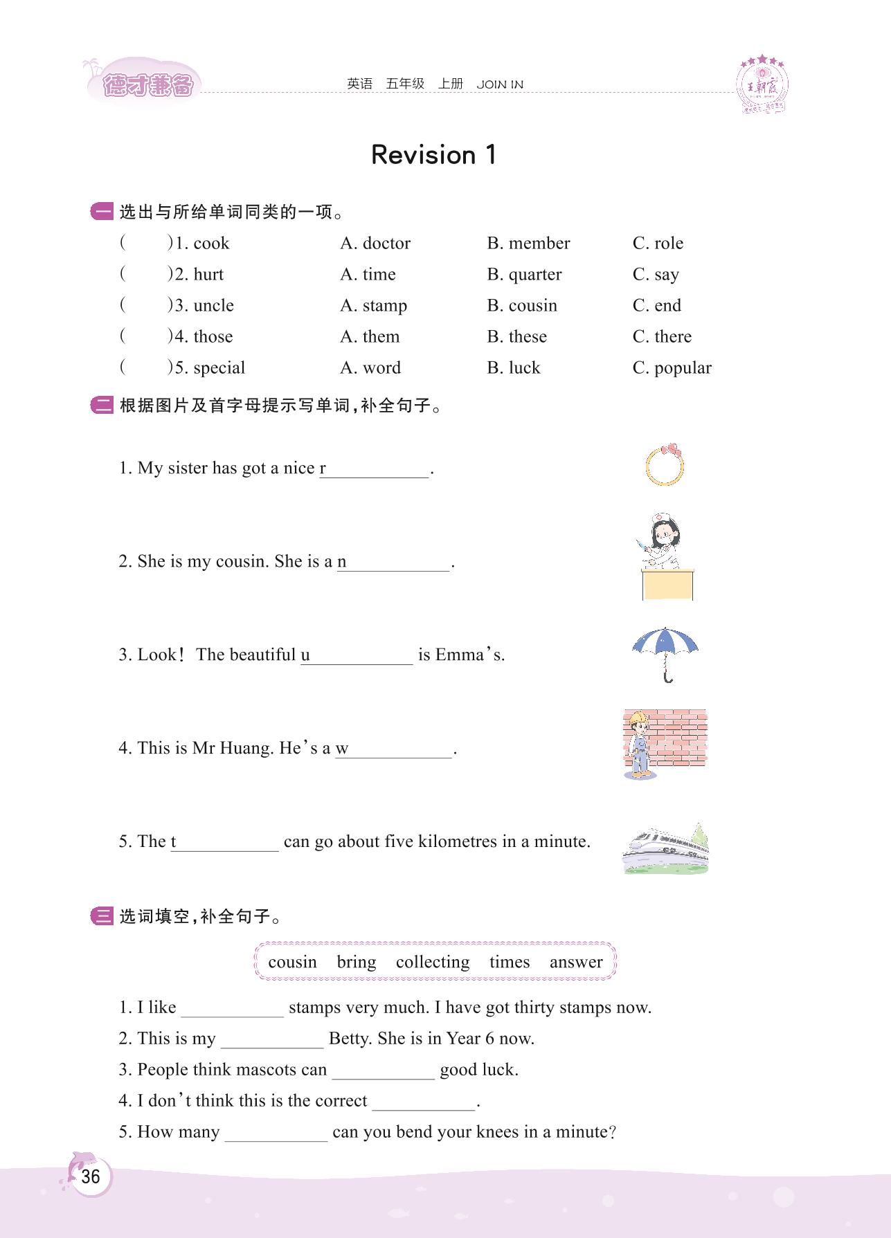 2022上册五年级英语剑桥版 Revision 1