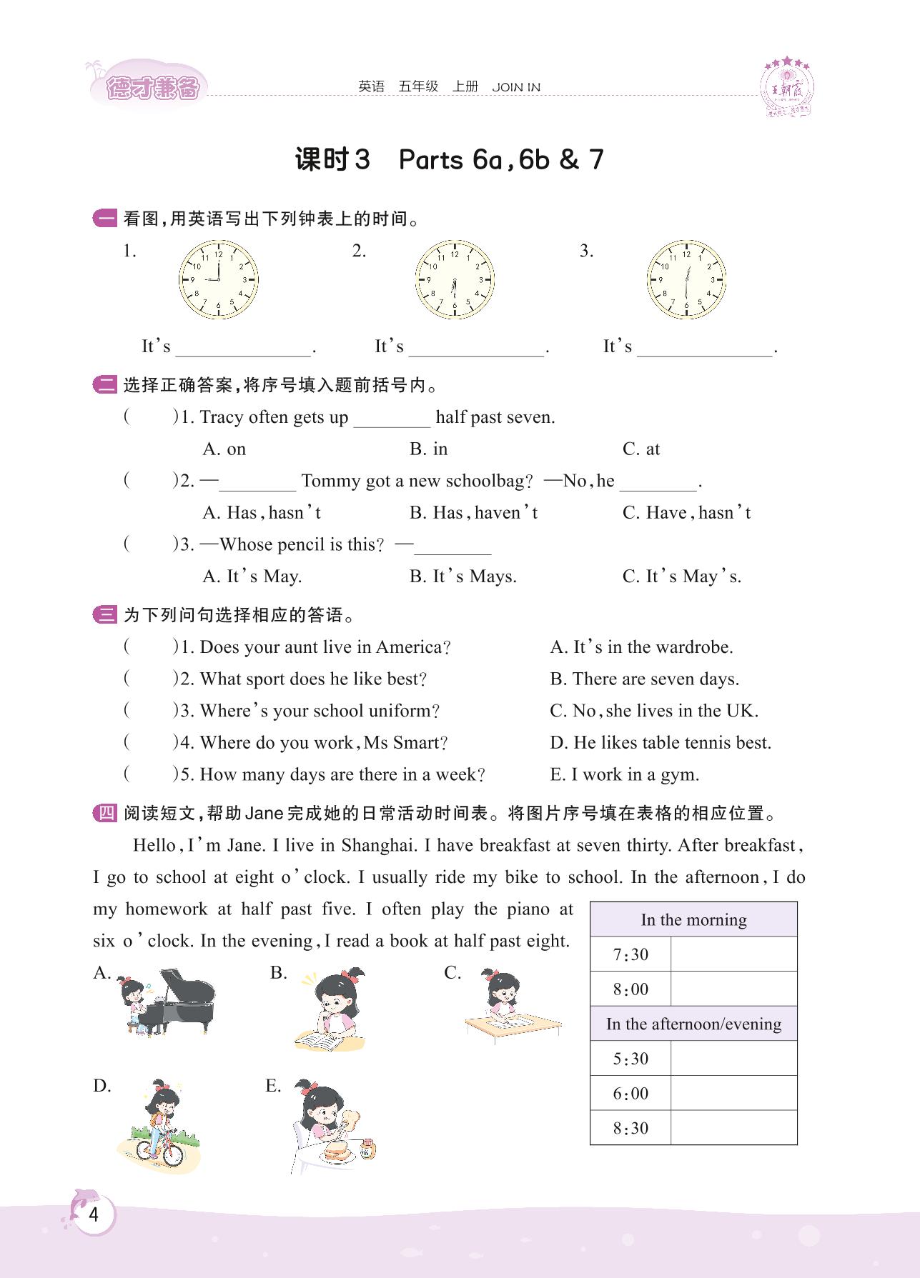 2022上册五年级英语剑桥版 Starter unit—课时 3 Parts 6a,6b & 7