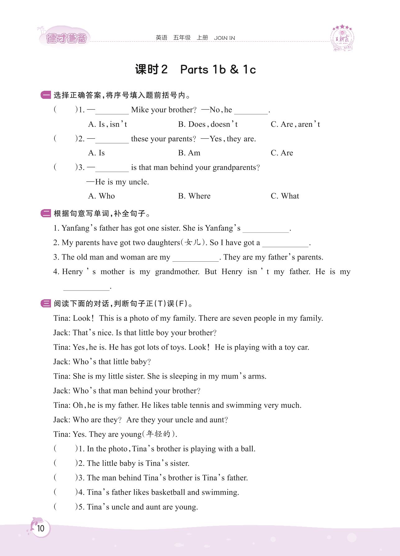 2022上册五年级英语剑桥版 Unit 1—课时 2 Parts 1b & 1c