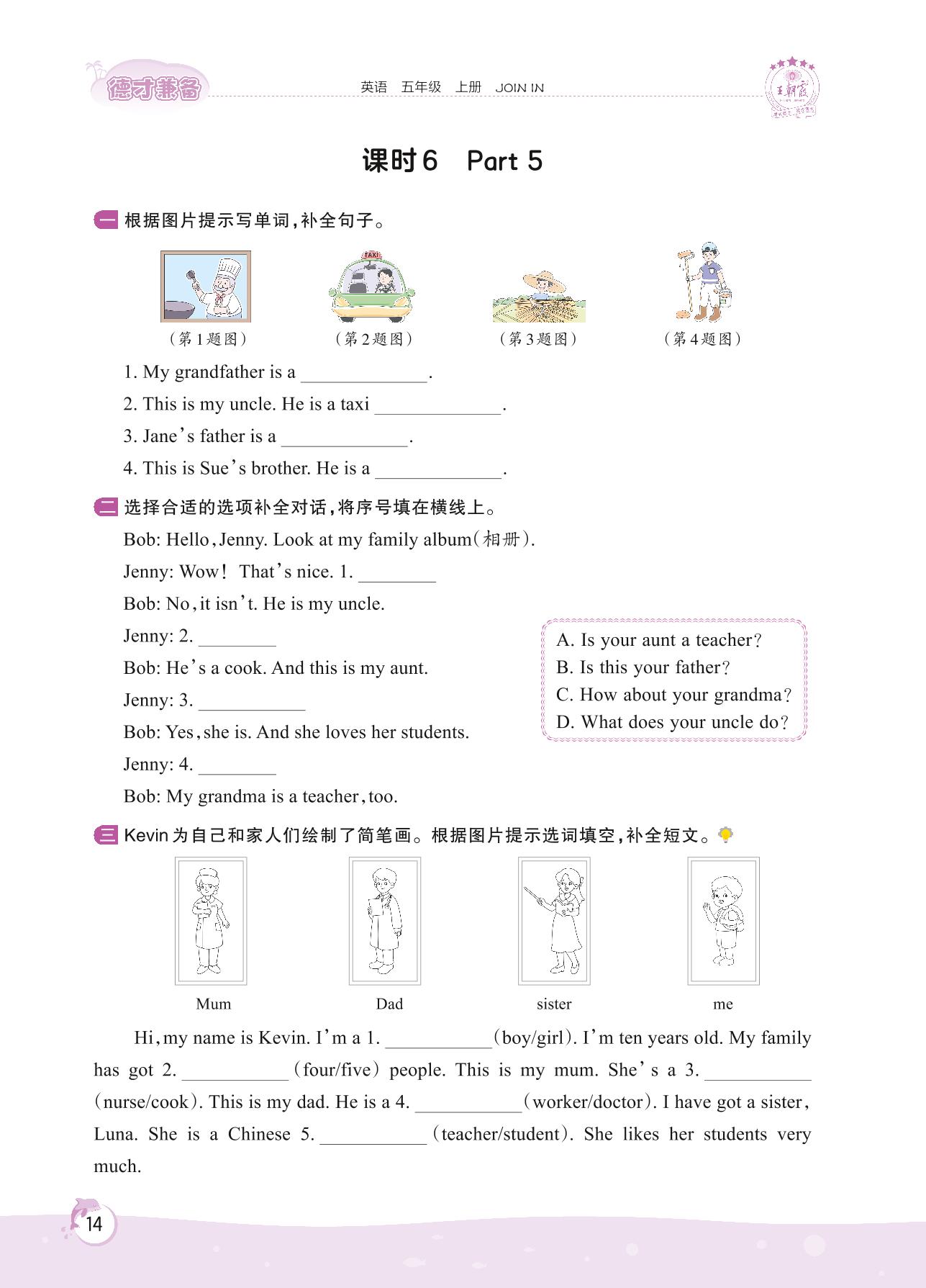 2022上册五年级英语剑桥版 Unit 1—课时 6 Part 5