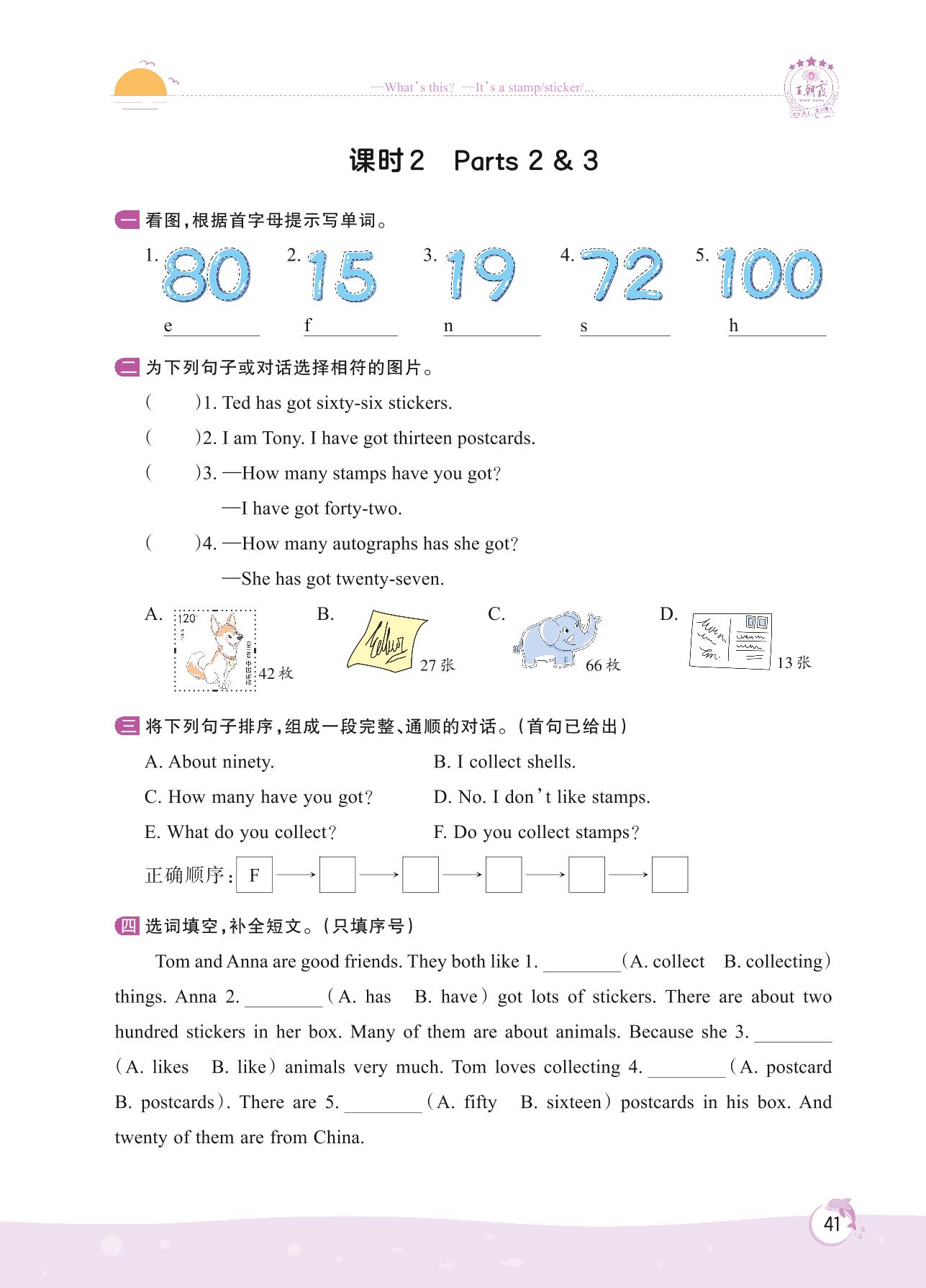 2022上册五年级英语剑桥版 Unit 4—课时 2 Parts 2 & 3