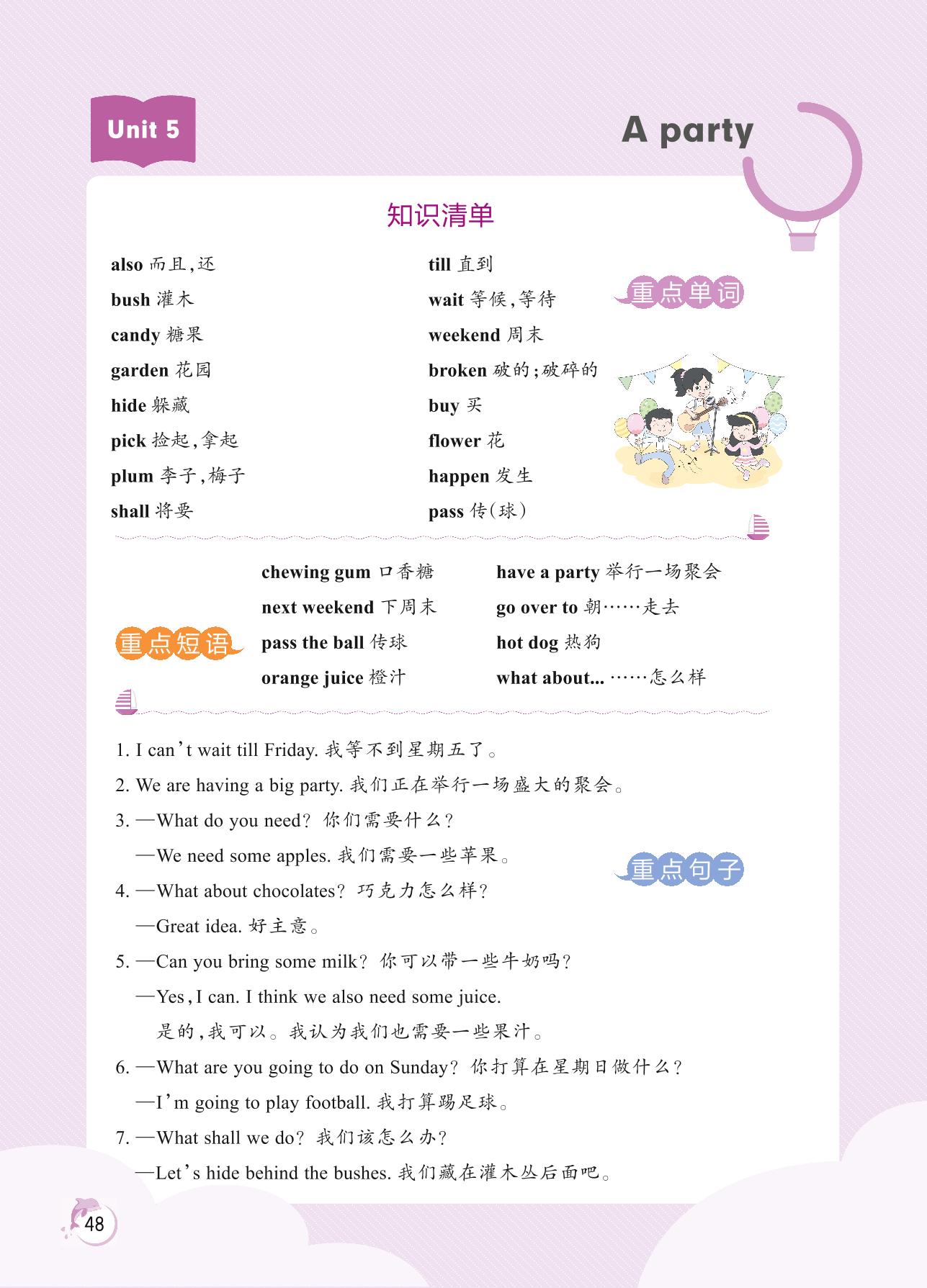 2022上册五年级英语剑桥版 Unit 5 知识清单
