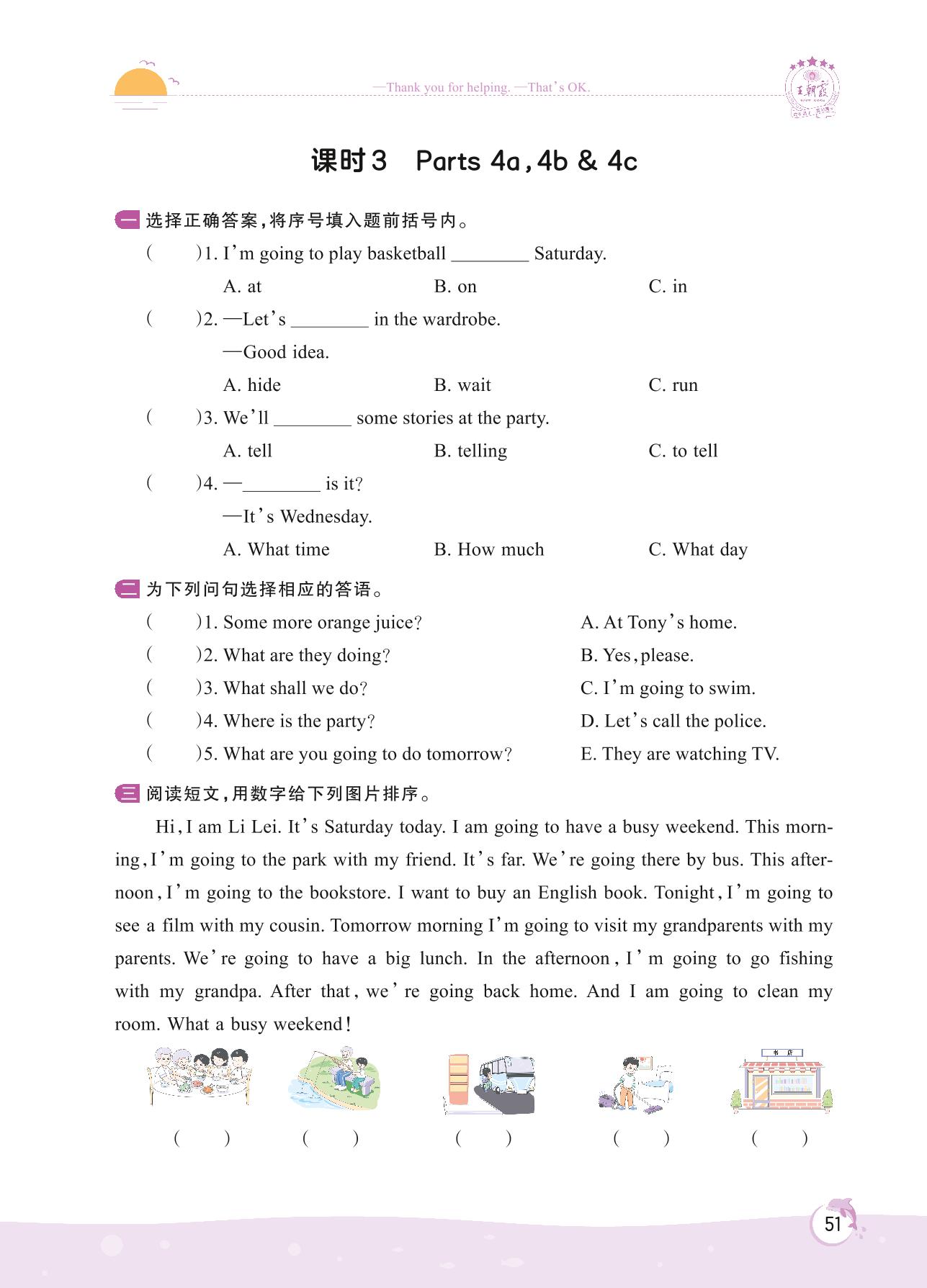 2022上册五年级英语剑桥版 Unit 5—课时 3 Parts 4a,4b & 4c