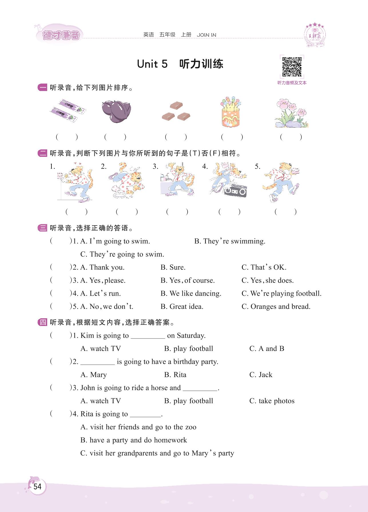 2022上册五年级英语剑桥版 Unit 5 听力训练