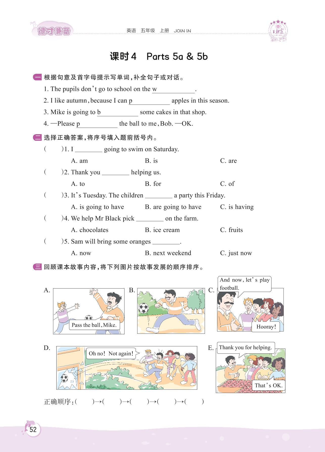 2022上册五年级英语剑桥版 Unit 5—课时 4 Parts 5a & 5b