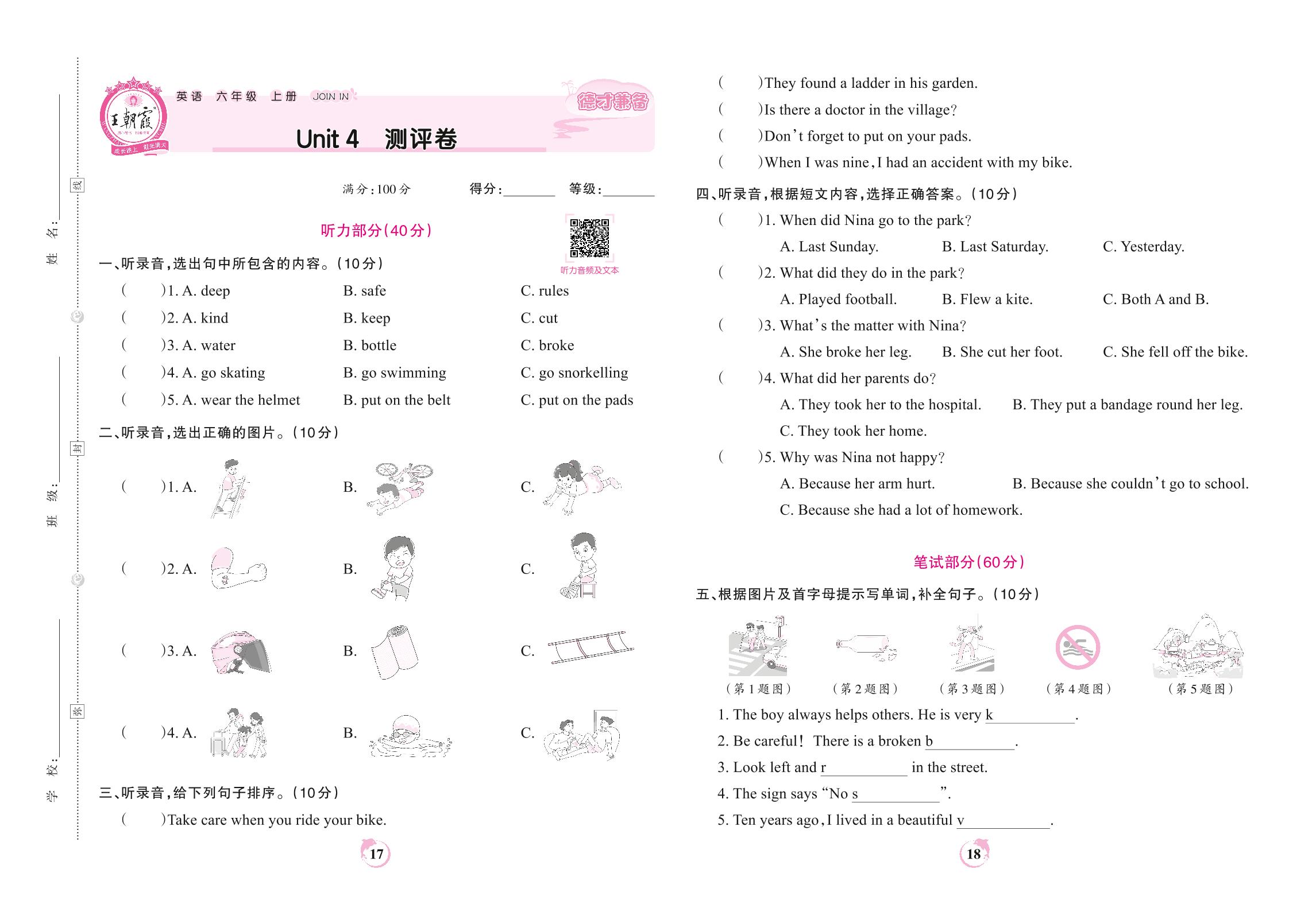 2022上册六年级英语剑桥版 Unit 4 测评卷