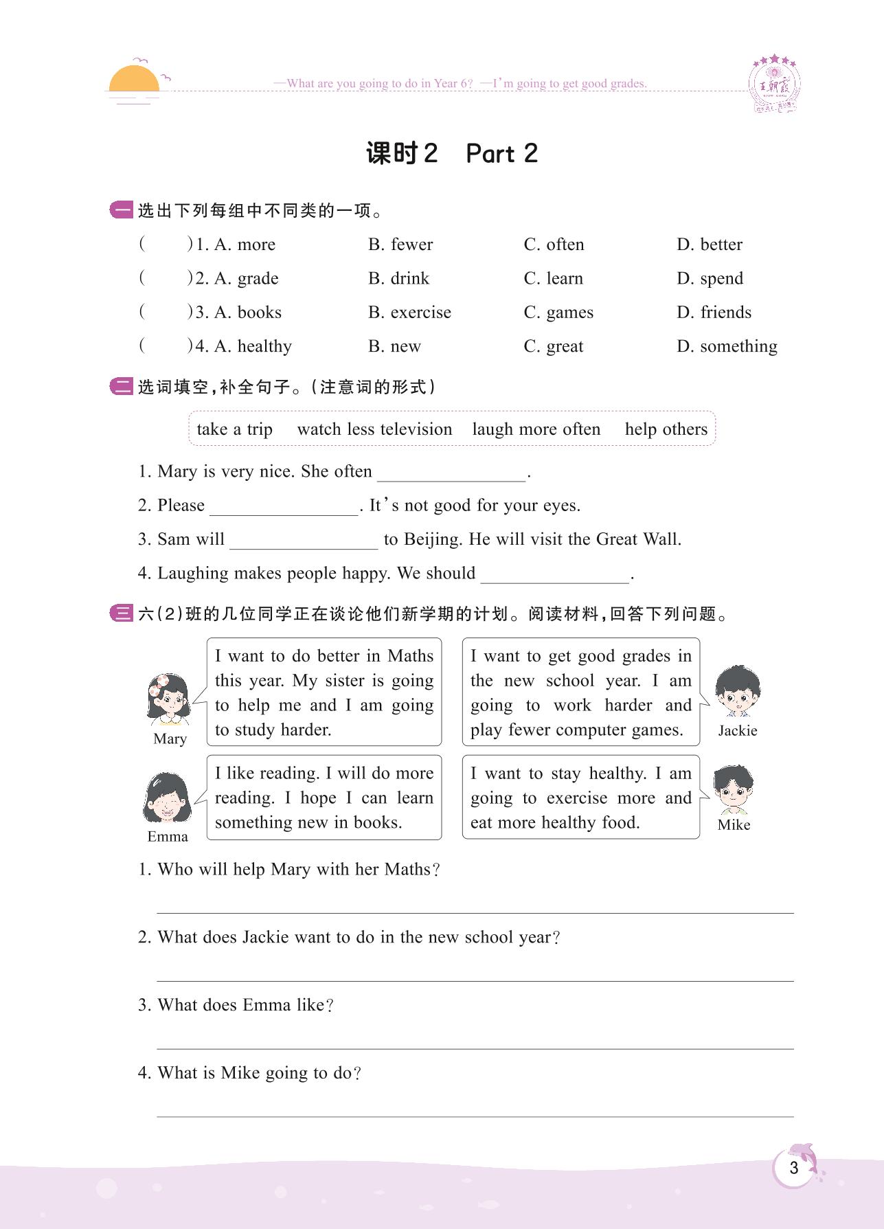 2022上册六年级英语剑桥版 Starter unit—课时 2 Part 2