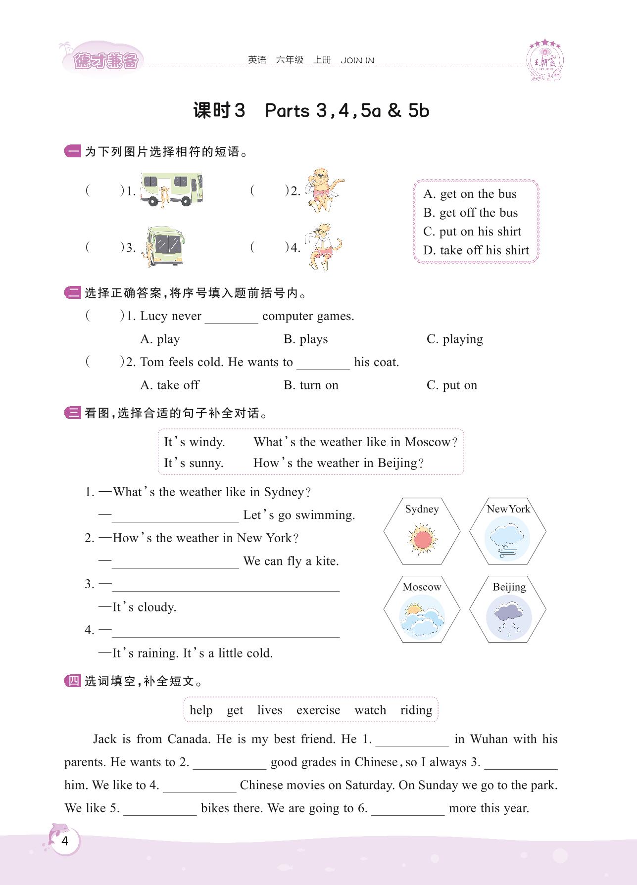 2022上册六年级英语剑桥版 Starter unit—课时 3 Parts 3,4,5a & 5b