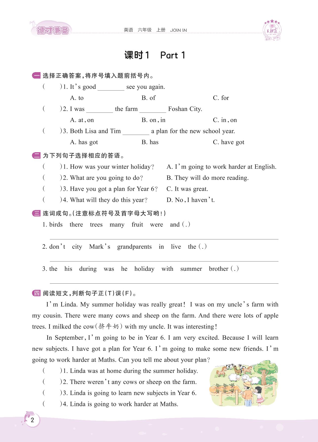 2022上册六年级英语剑桥版 Starter unit—课时 1 Part 1