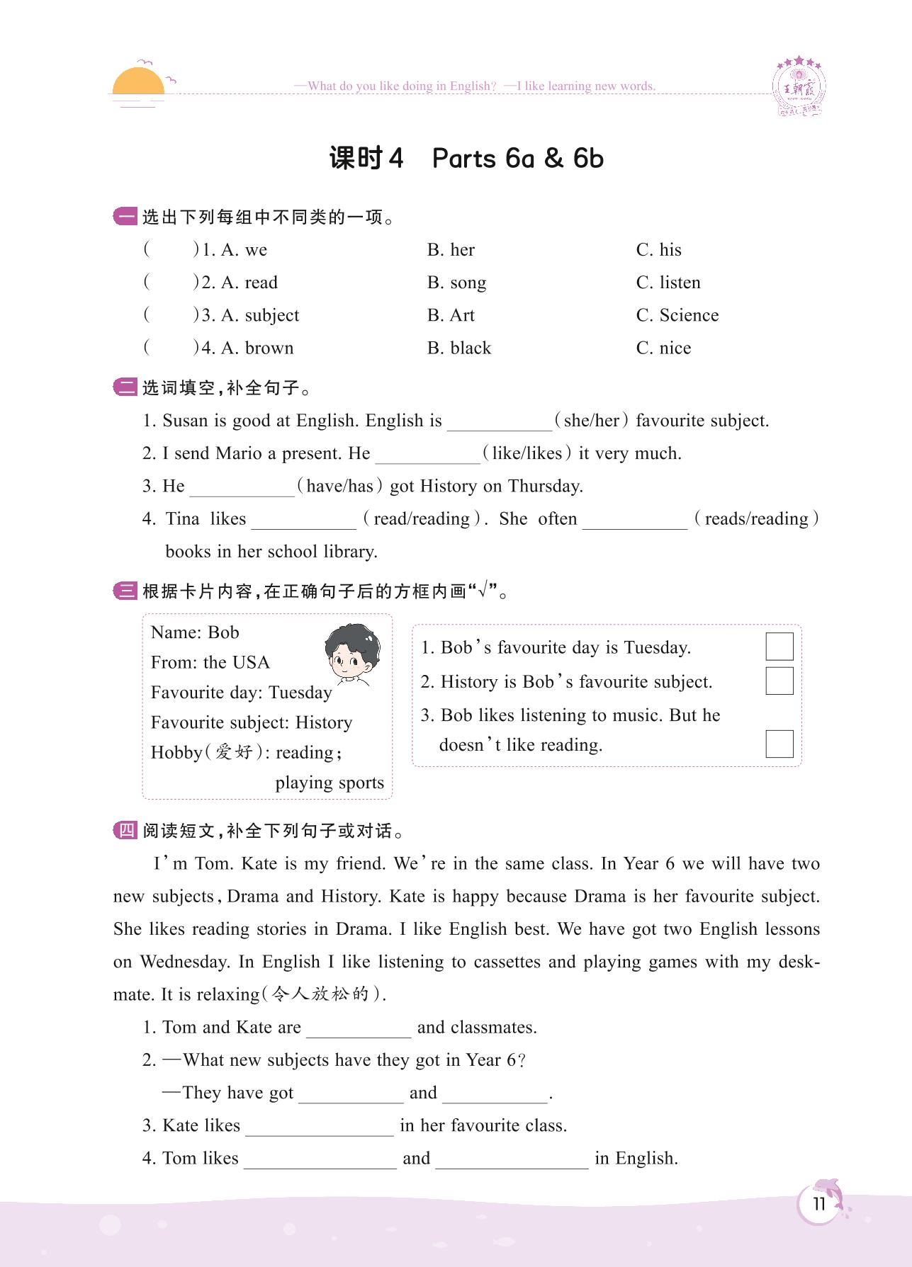 2022上册六年级英语剑桥版 Unit 1—课时 4 Parts 6a & 6b