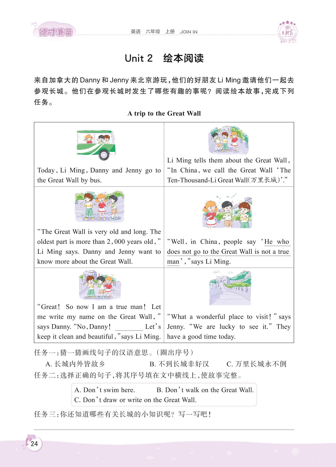 2022上册六年级英语剑桥版 Unit 2 绘本阅读
